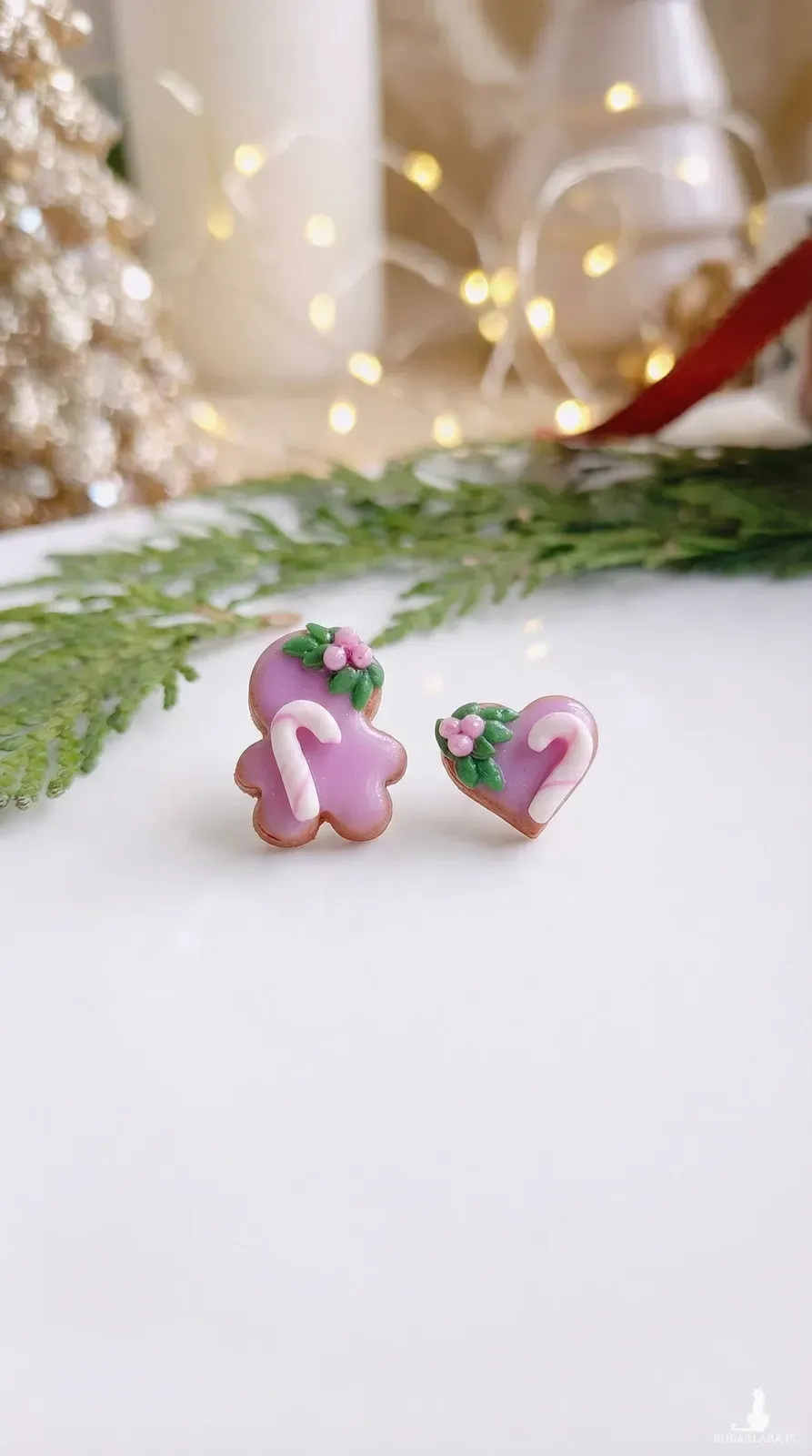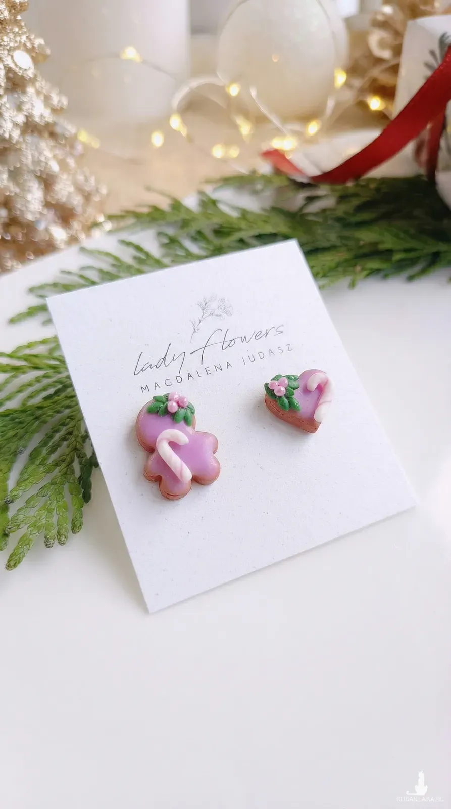 Kolczyki ludziki z serduszkiem ręcznie wykonane z profesjonalnej masy termoutwardzalnej marki Fimo