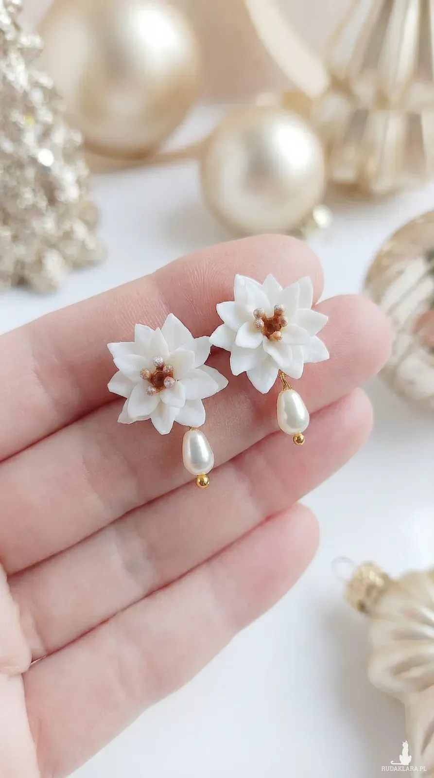 Kolczyki z białymi poisencjami i perełkami