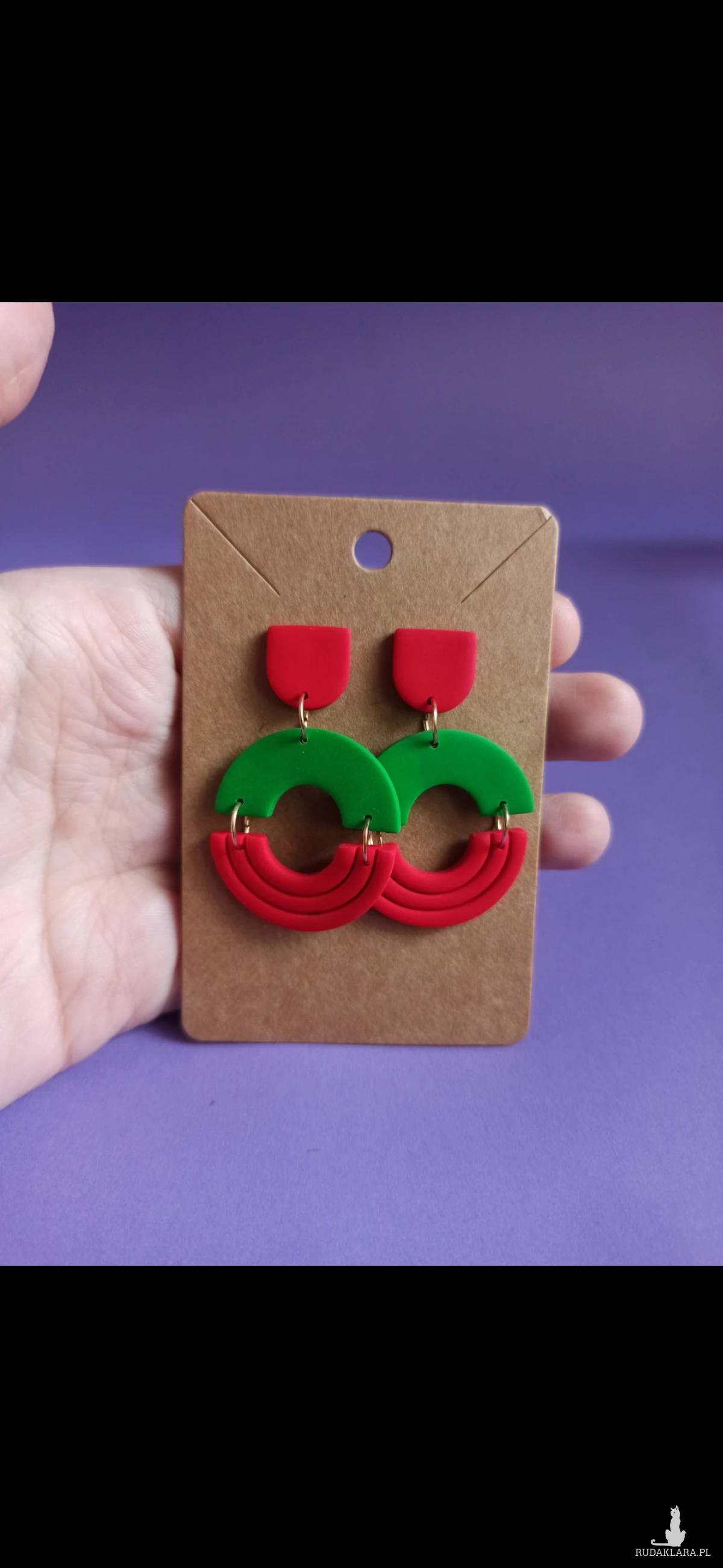 Kolczyki sztyfty z dwoma półkolami czerwonym i zielonym.