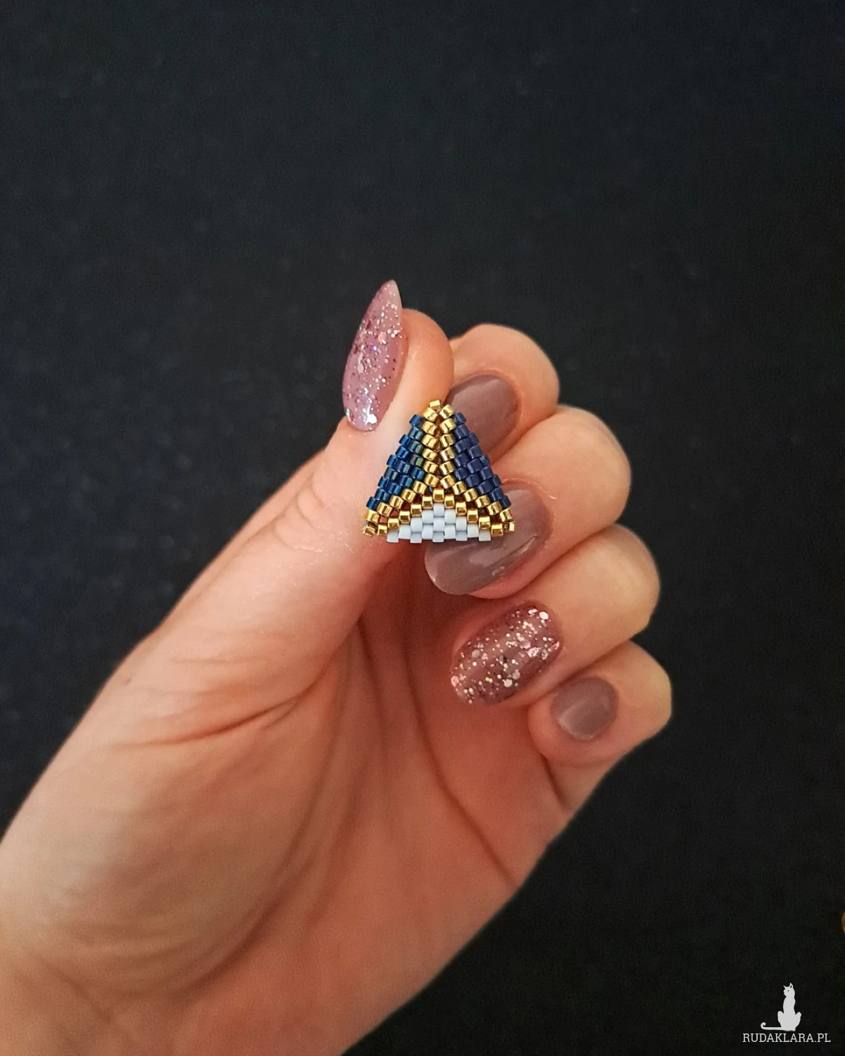 Kolczyki wchodzące w skład zestawu to delikatny, ale efektowny dodatek, który dopełnia całość. Ich niewielki rozmiar (1,5 x 1,5 cm) i unikalny, trójkątny kształt sprawiają, że są niezwykle uniwersalne. Niebieskie koraliki, w połączeniu z ciepłym złotem, tworzą elegancki akcent, który rozświetli każdą stylizację. Lekkość i precyzyjne wykonanie zapewniają komfort noszenia przez cały dzień.