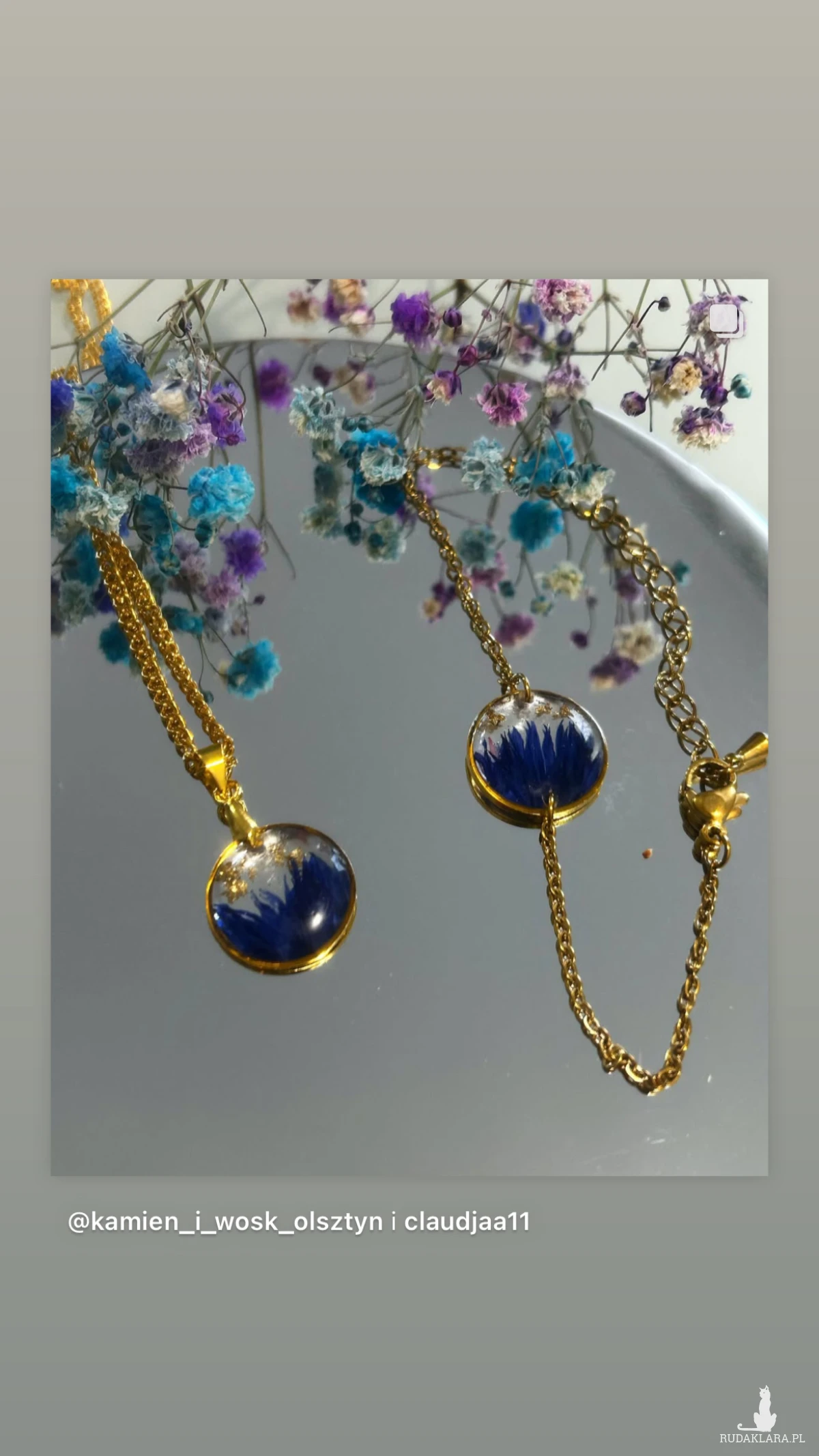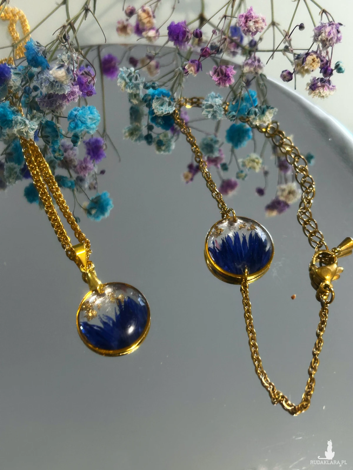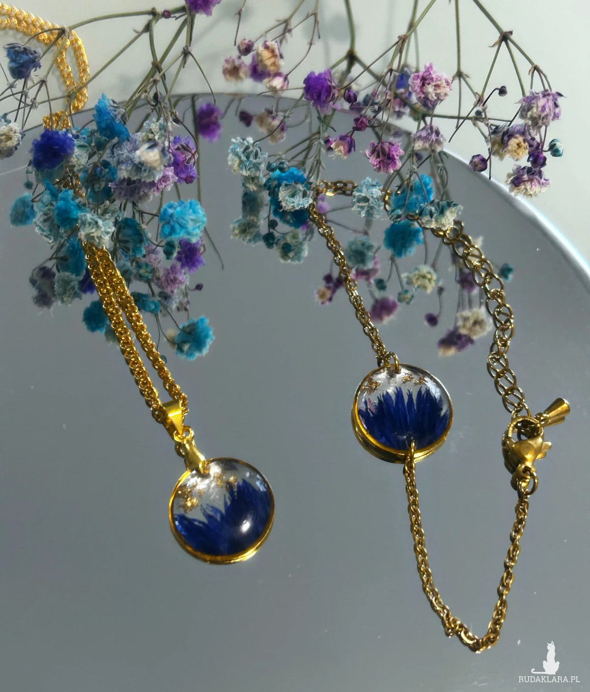 Ręcznie wykonany komplet biżuterii z chabrami.
