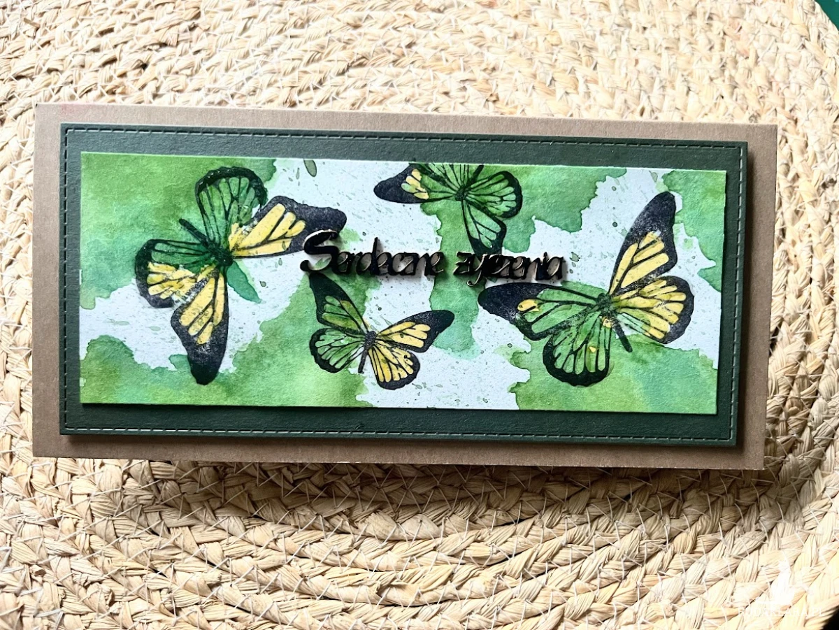 Kartka urodzinowa- imieninowa w stylu minimalistycznym. Wykonana ręcznie z niezwykłą starannością i dbałością o każdy detal. Powstała z materiałów do scrapbookingu .Baza w kolorze zielonym na papierze kraftowym. Zdobiona stemplami i akwarelami. Rozmiar 21*10,5 cm. W komplecie z kopertą. Wewnątrz znajduje się miejsce na zamieszczenie własnych życzeń. W tej postaci kartka dostępna od ręki. Polecam