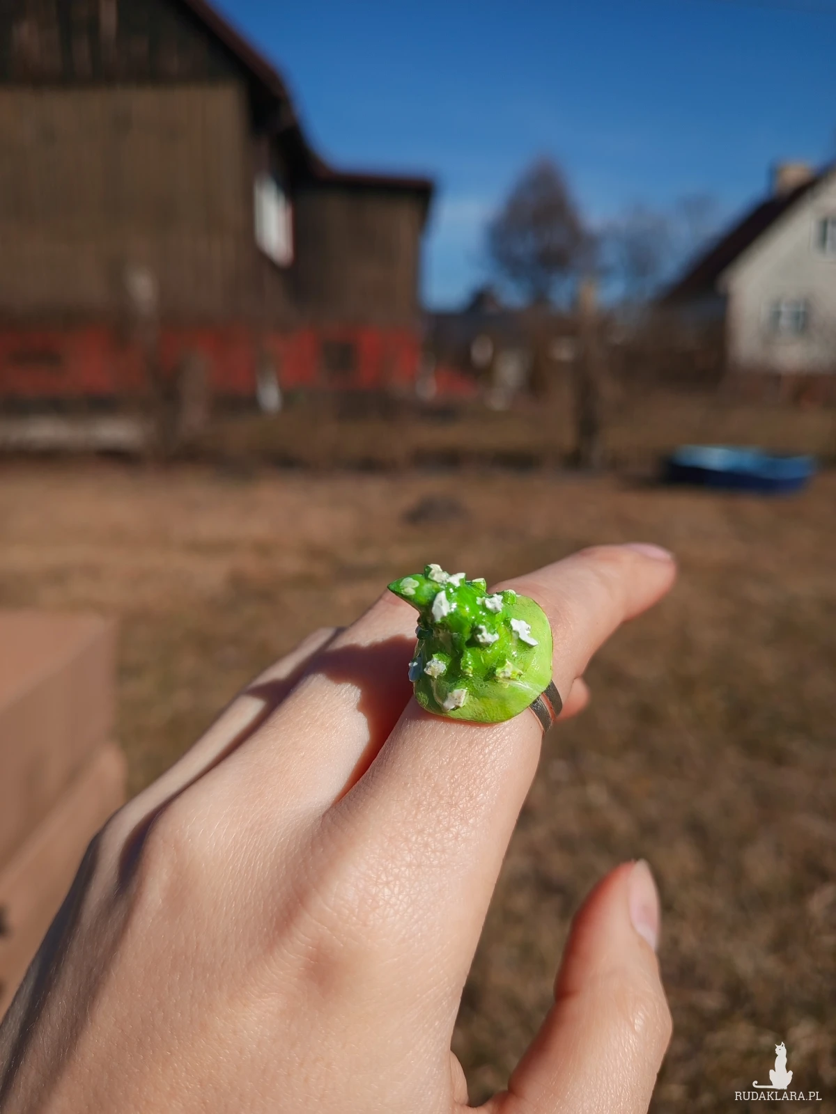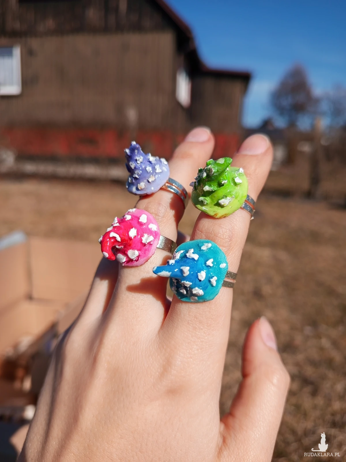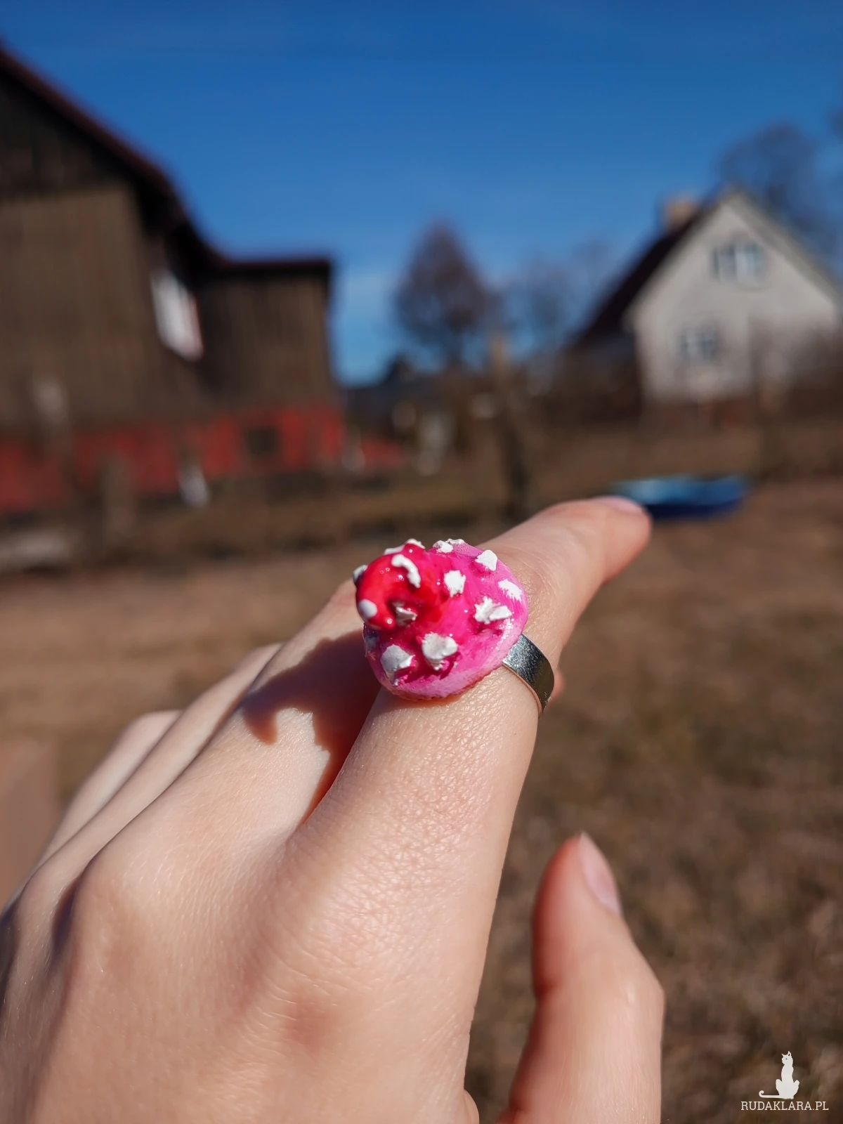 ręcznie rzeźbione magicznych grzybków osadzone na mosiężnym pierścieniu (w kolorze srebnym)