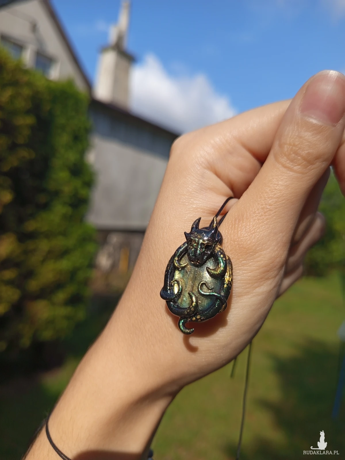 ręcznie wykonany naszyjnik z masy polimerowej z labradorytem