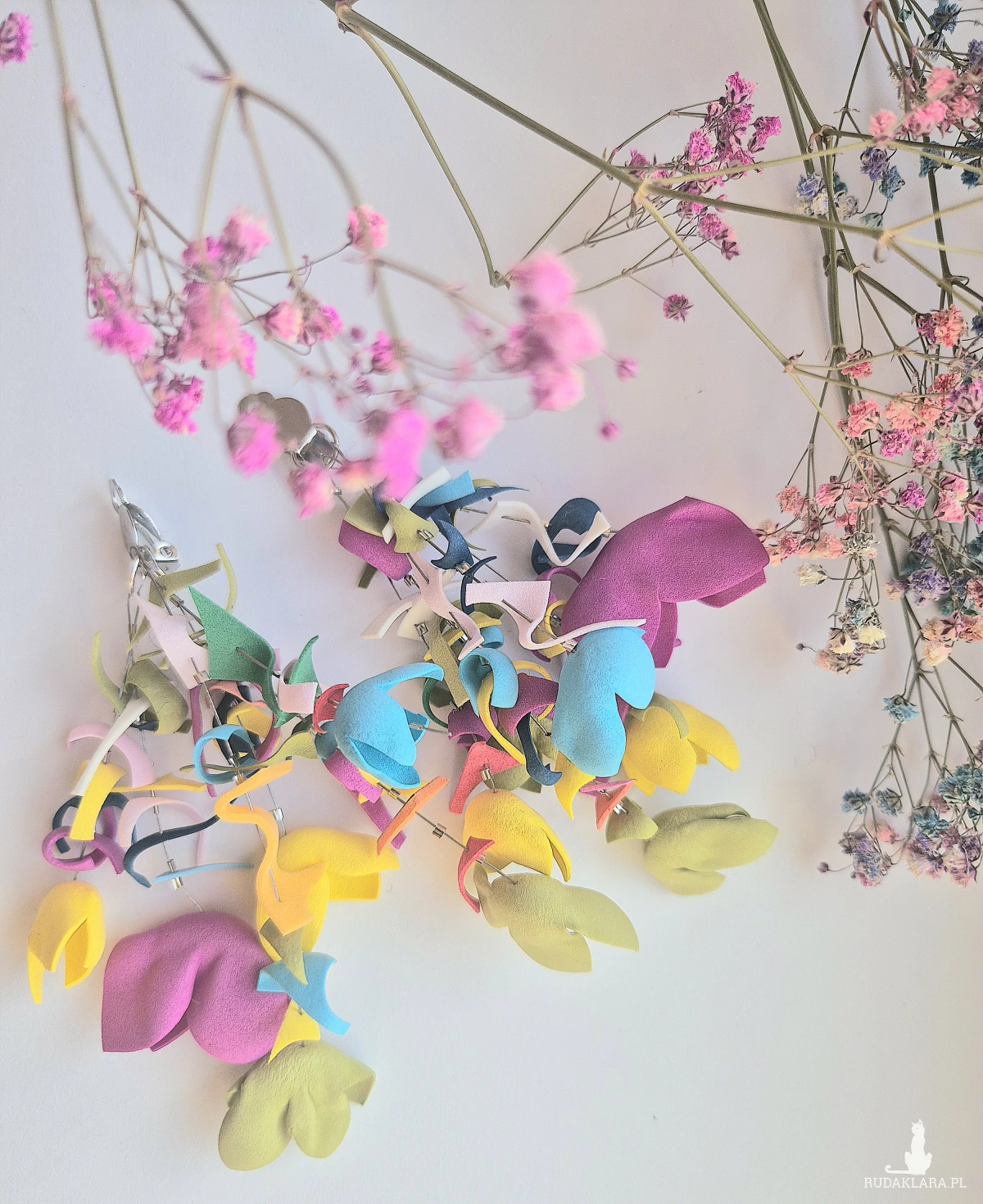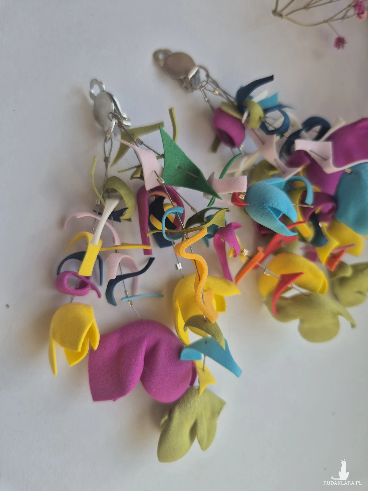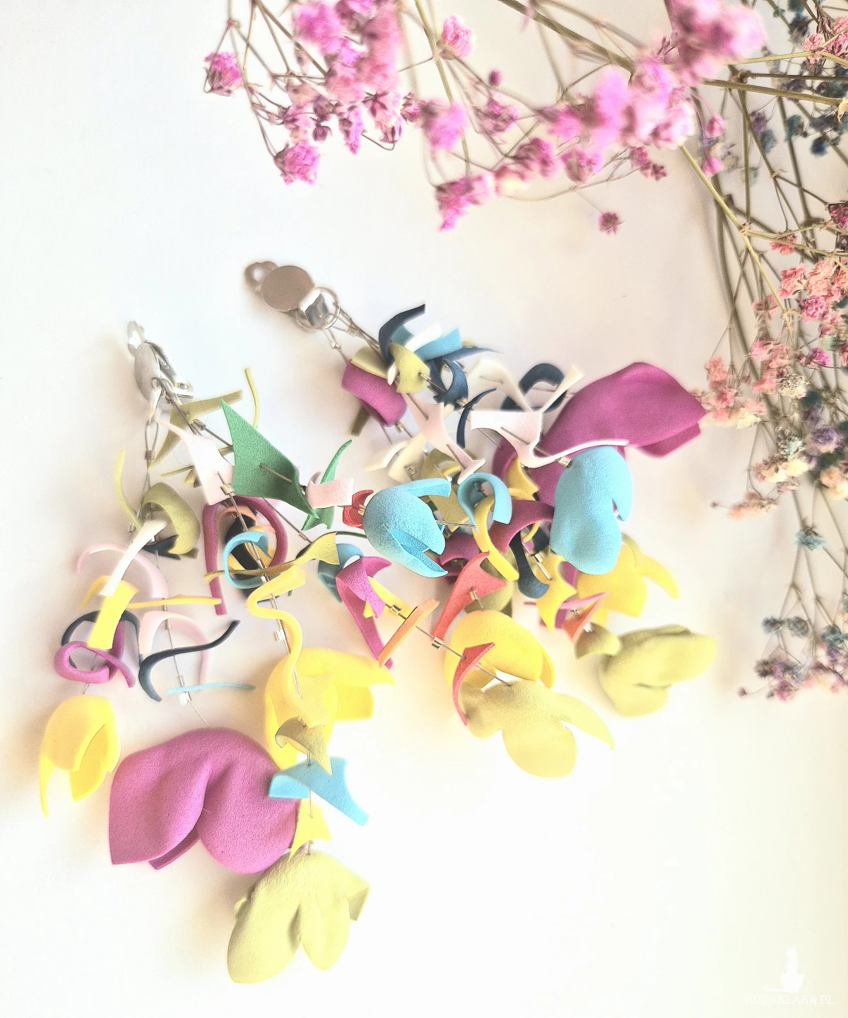 Te klipsy to wyjątkowy wybór dla miłośniczek nietuzinkowej biżuterii. Są niezwykle lekkie, mimo swojej efektownej wielkości, co zapewnia komfort noszenia przez cały dzień. Długie zawieszki wykonane z metalu prezentują misternie ręcznie formowane kwiaty, które przyciągają wzrok swoim artystycznym wyglądem. Kwiaty są delikatne, a jednocześnie wyraziste, dzięki czemu klipsy doskonale uzupełniają zarówno eleganckie, jak i casualowe stylizacje. To idealne połączenie piękna i funkcjonalności dla kobiet ceniących oryginalnosc