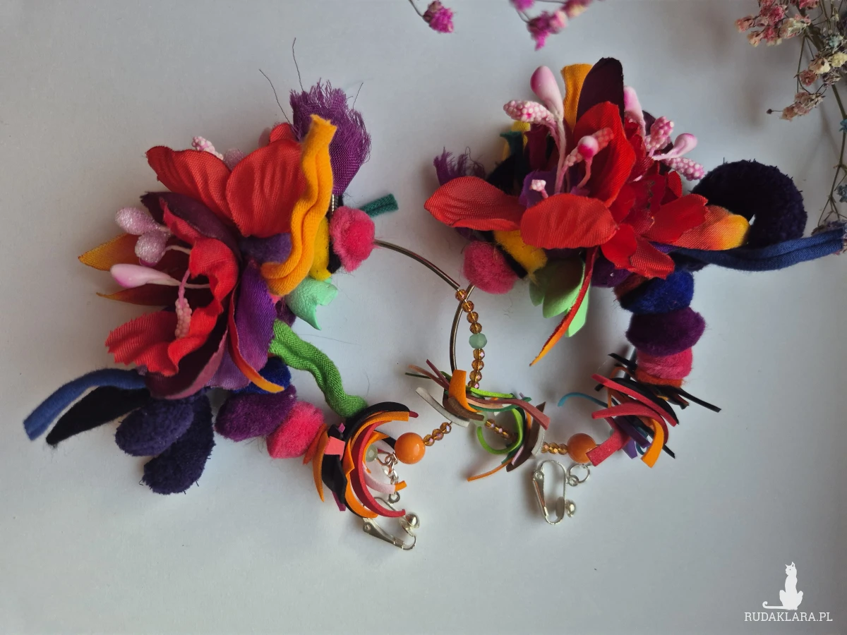 Kolczyki lub klipsy oparte na sztuce ludowej,   absolutne szaleństwo ,bardzo dużo różnych elementów, kolczyki są lekkie, duże dla zwariowanej ekscentrycznej i oryginalnej osoby polecam , Napisz czy chcesz kolczyki czy klipsy polecam