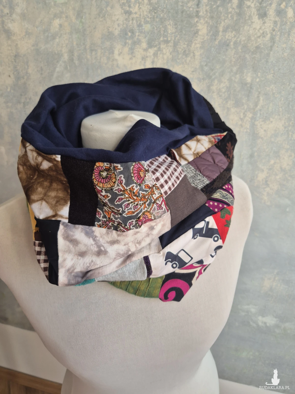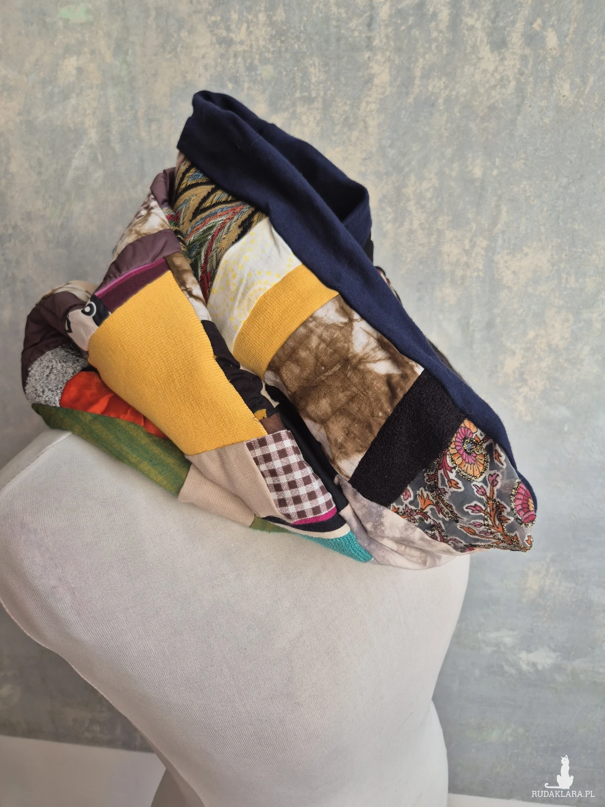komin miękki patchworkowy kolorowy uniwersalny damski rozmiar 39cm na 36cm