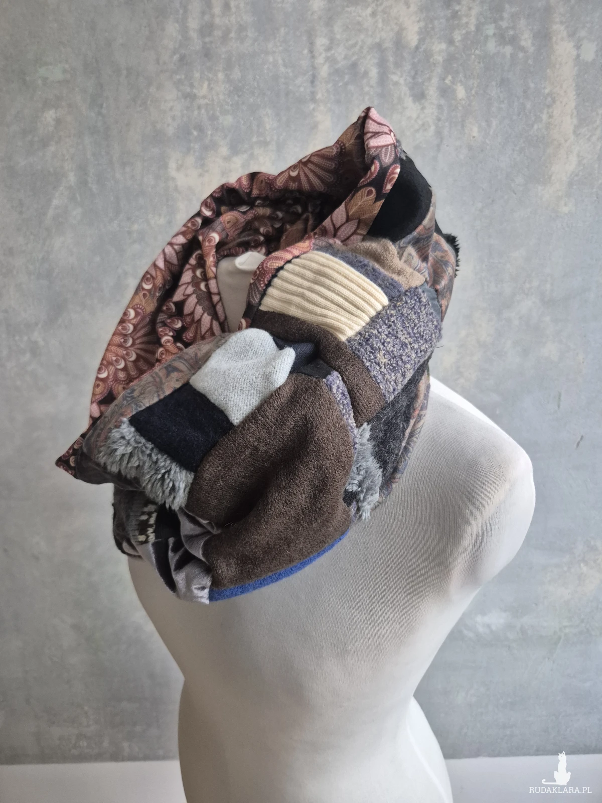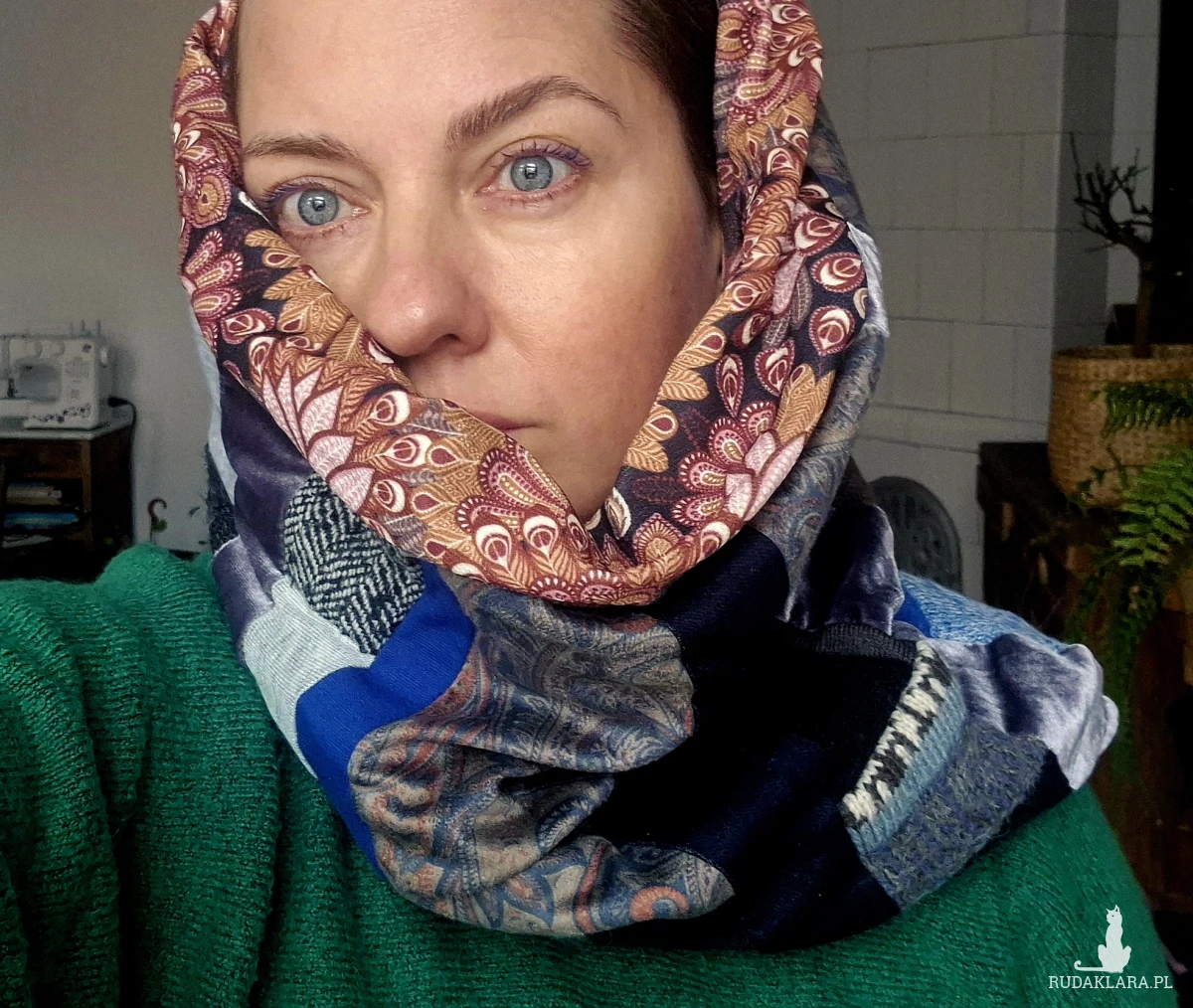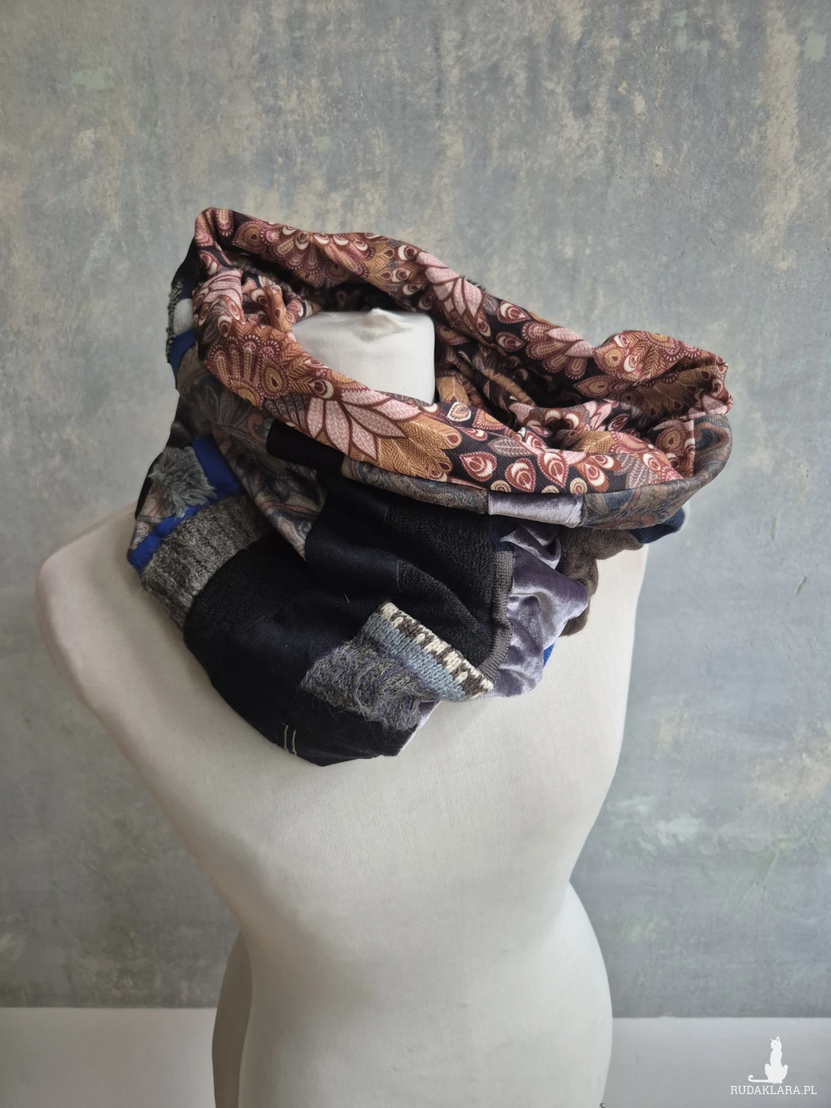 komin miękki patchworkowy kolorowy uniwersalny damski rozmiar 39cm na 36cm
