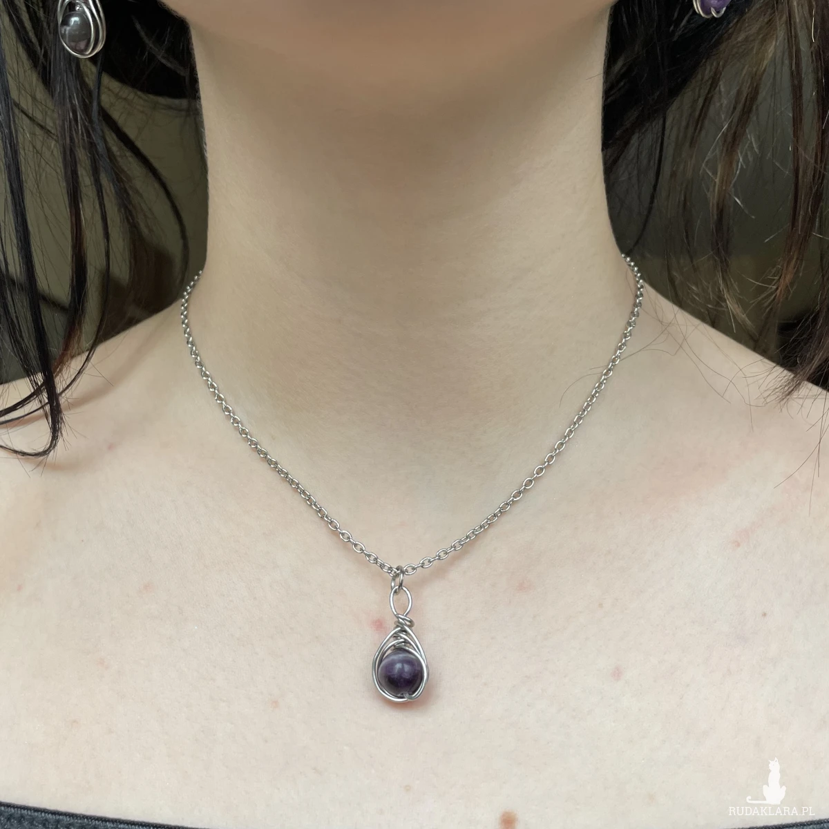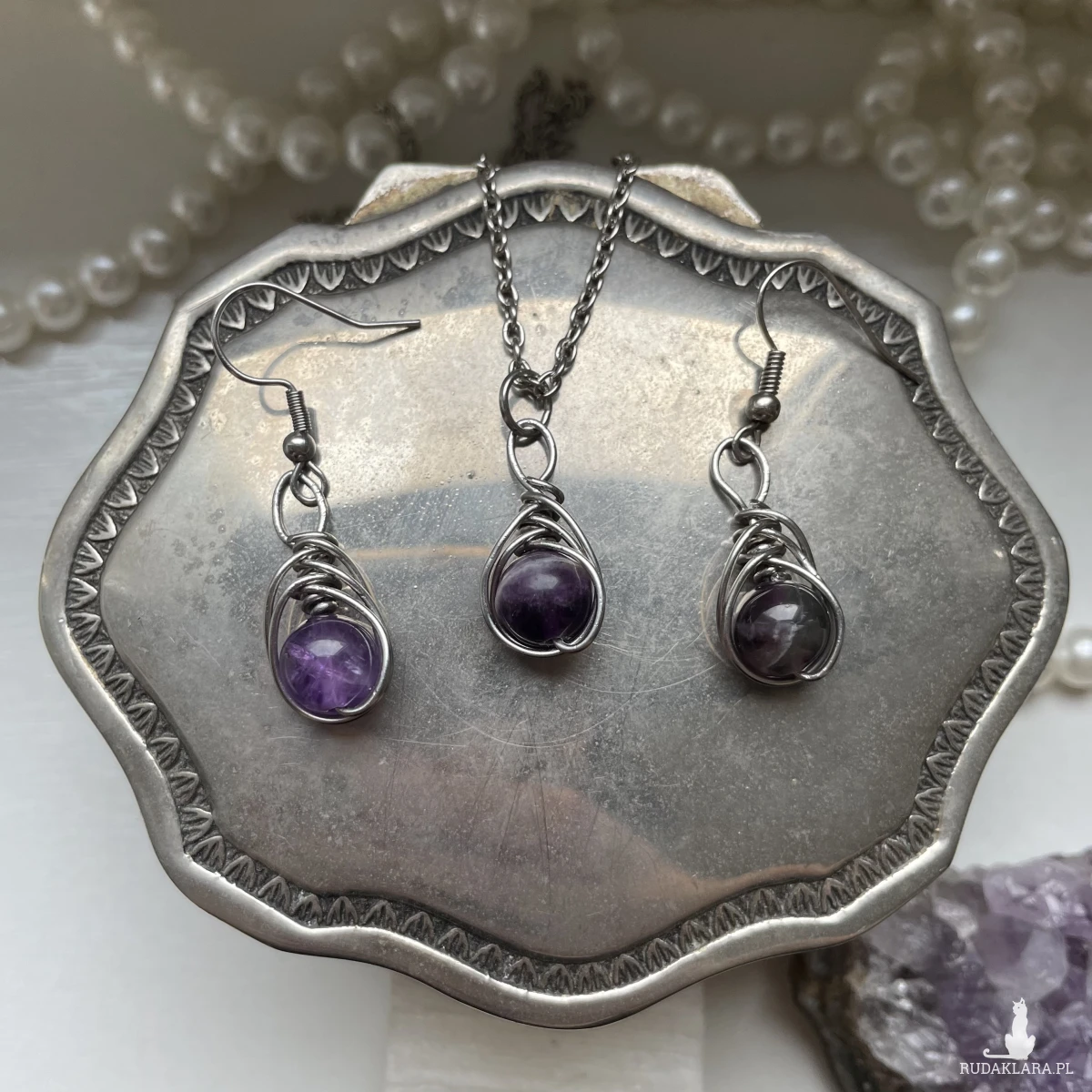 Zestaw zawiera kolczyki i naszyjnik z ametystem ze stali chirurgicznej. Proszę w dodatkowych informacjach do zamówienia napisać długość łańcuszka na naszyjnik <3