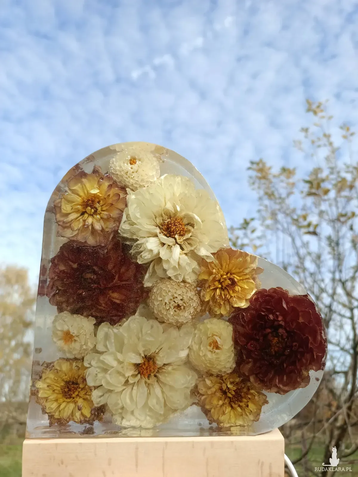 - Lampka w kształcie serca - wykonywana w głębokiej formie z kwiatów