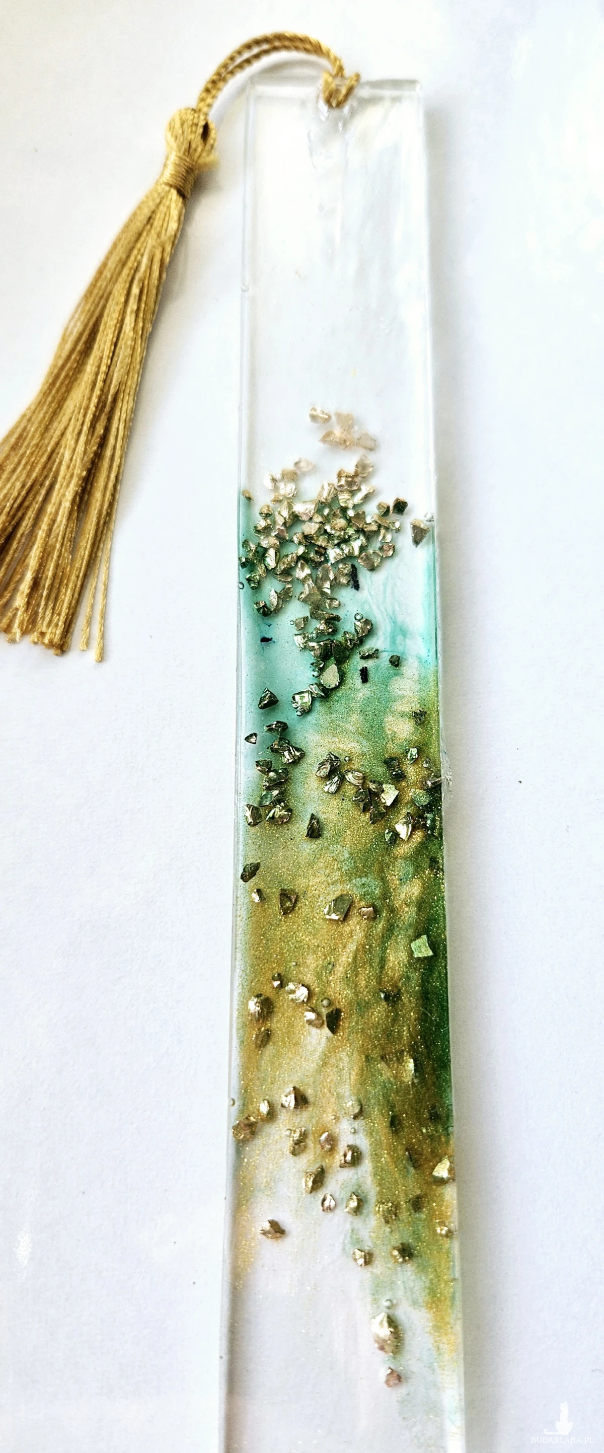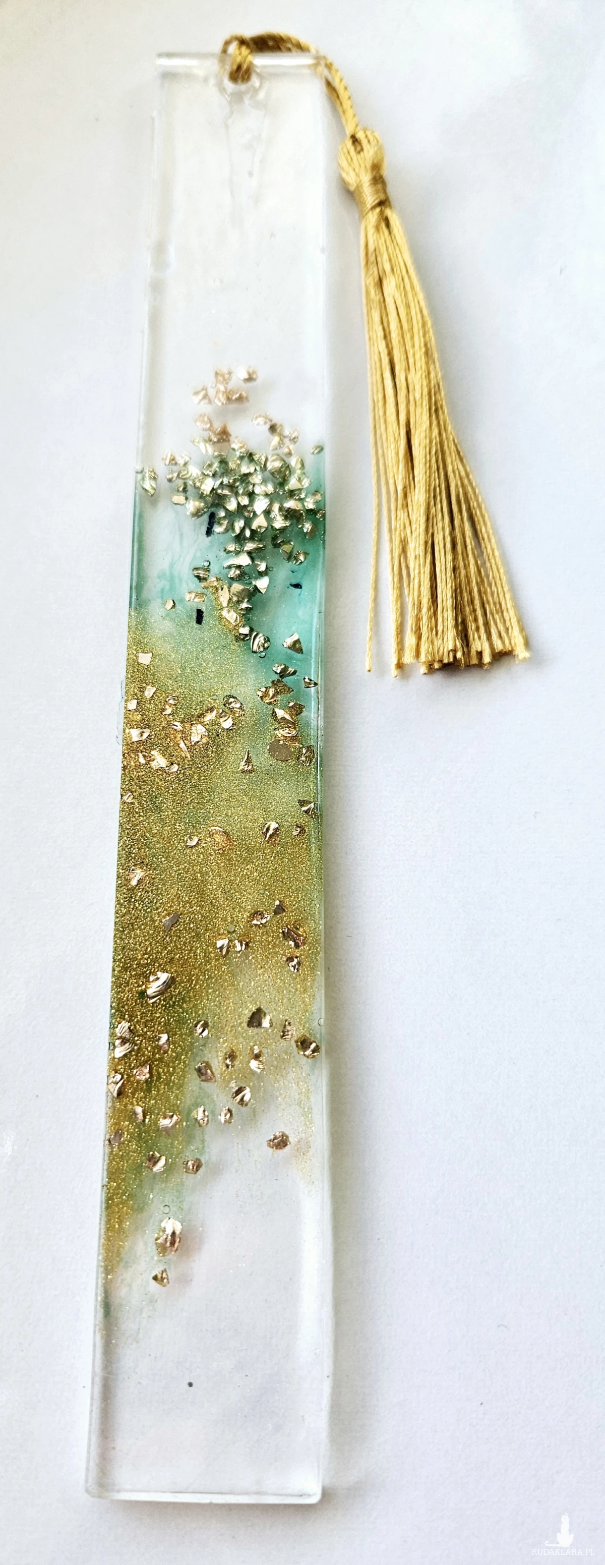 Zakładka z żywicy epoksydowej złoto turkusowy z kryształkami D04