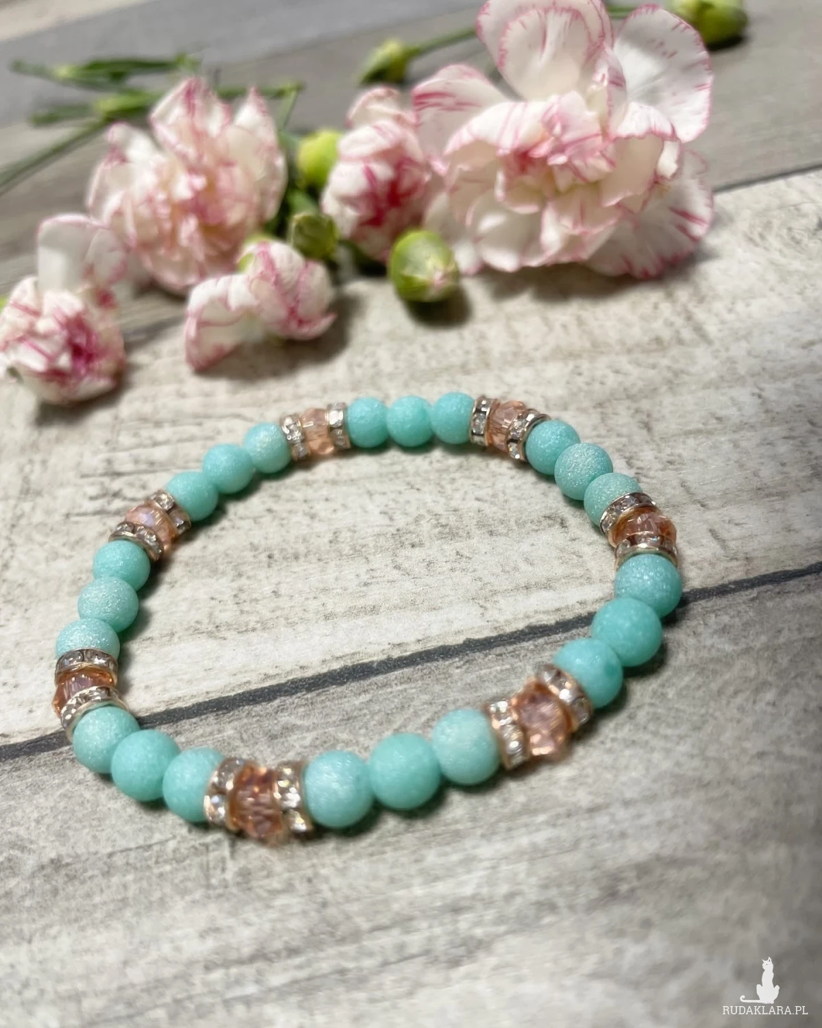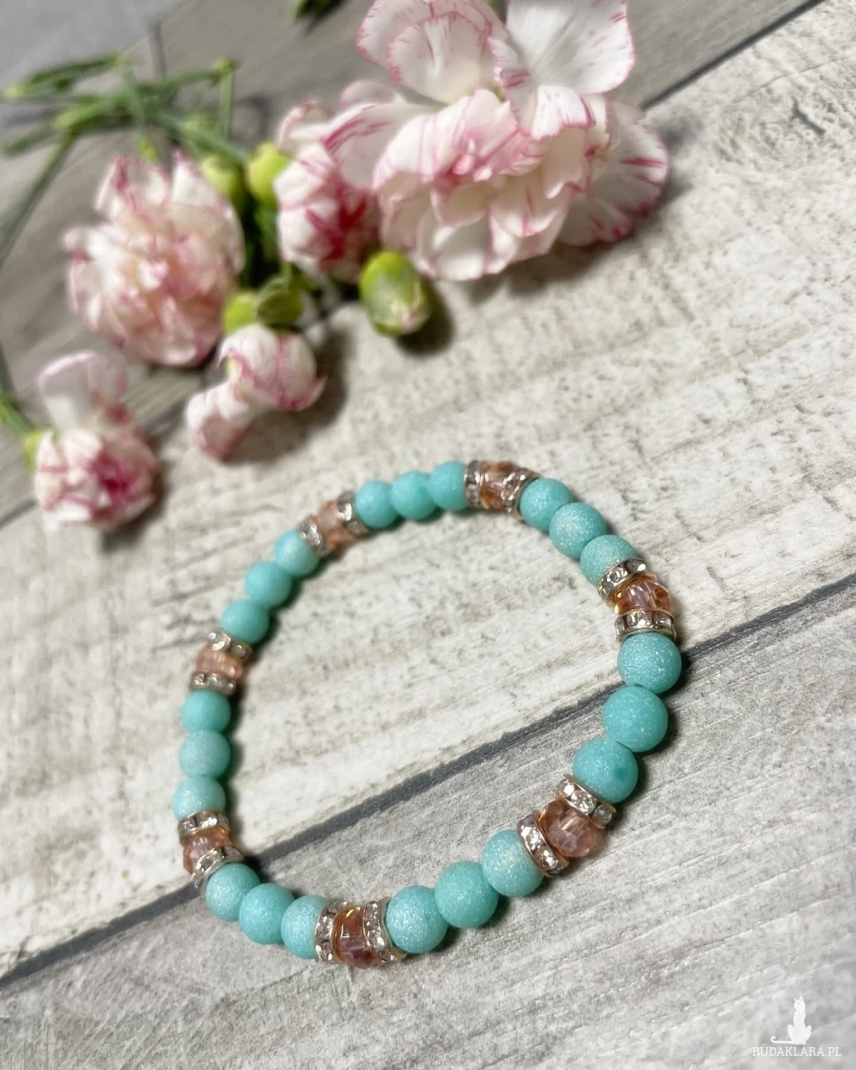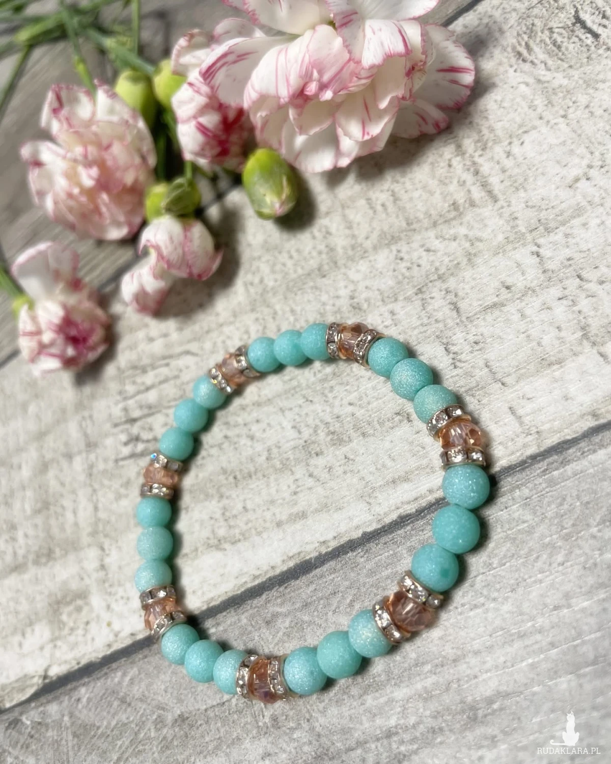 Przepięknie błyszczące brokatowe koraliki przeplatane fasetowanymi szklanymi