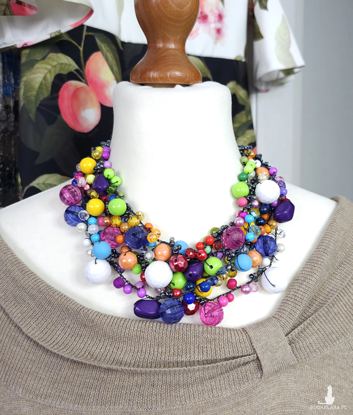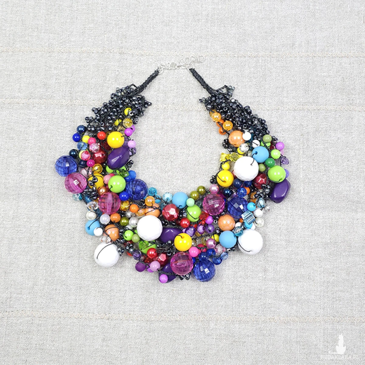 6642 szary, kolorowy, tęczowy naszyjnik; kolia