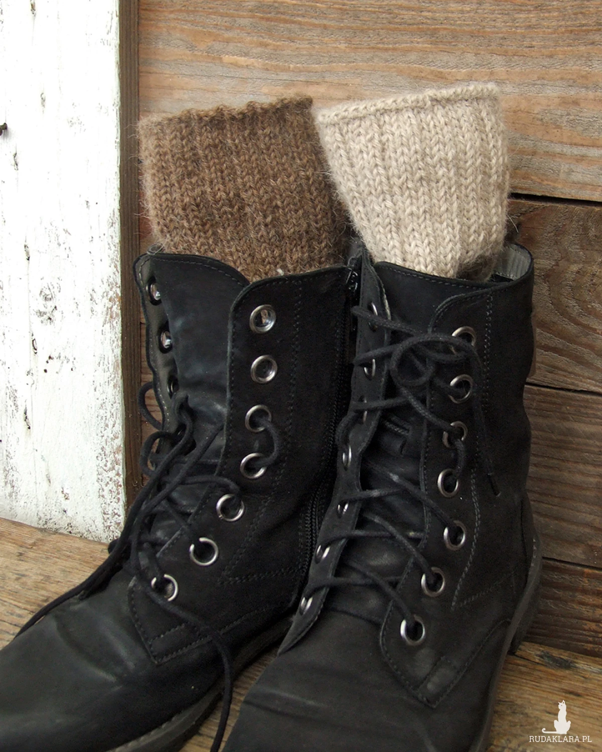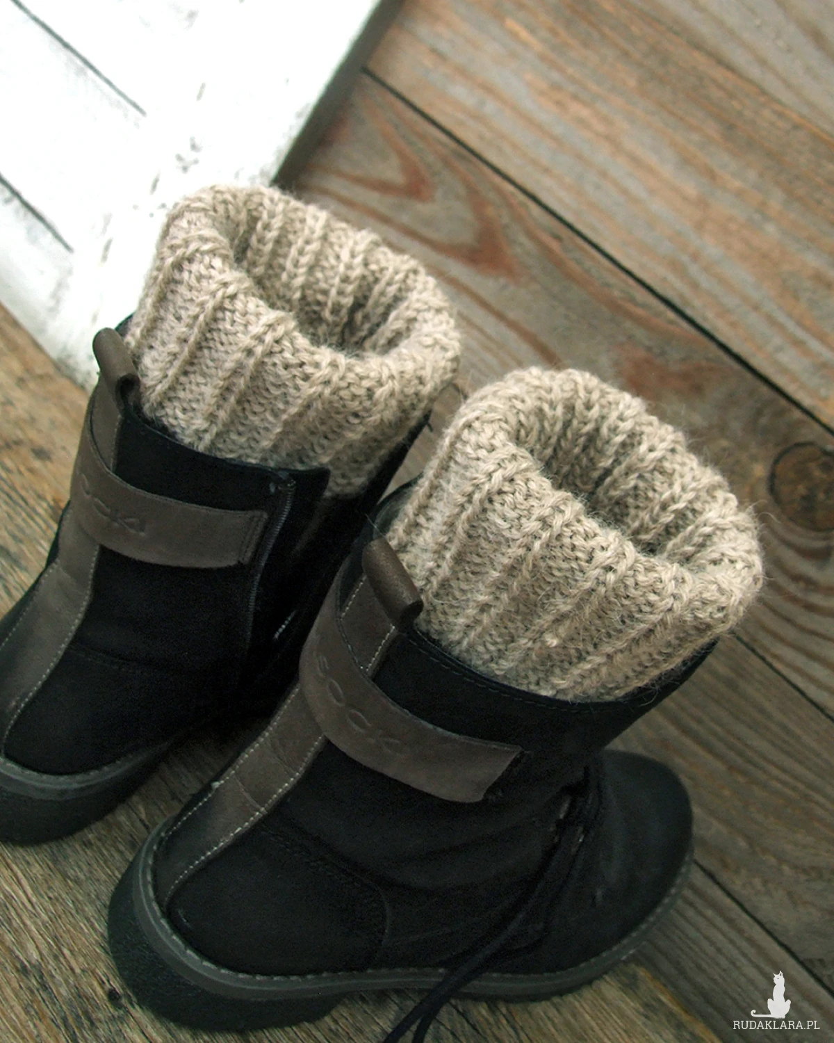 W zależności od butów i ubioru można je zakładać na dwa sposoby: raz nam będą pasowały jasno-beżowym na górze, a raz ciemnym orzechowym. To zupełnie tak jakbyśmy miały dwie pary getrów :)