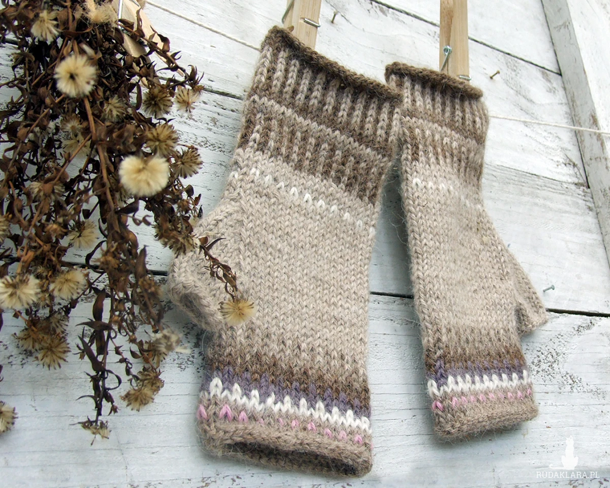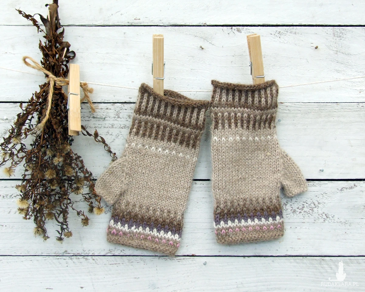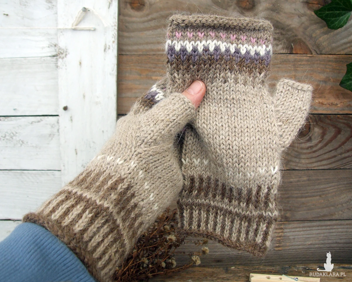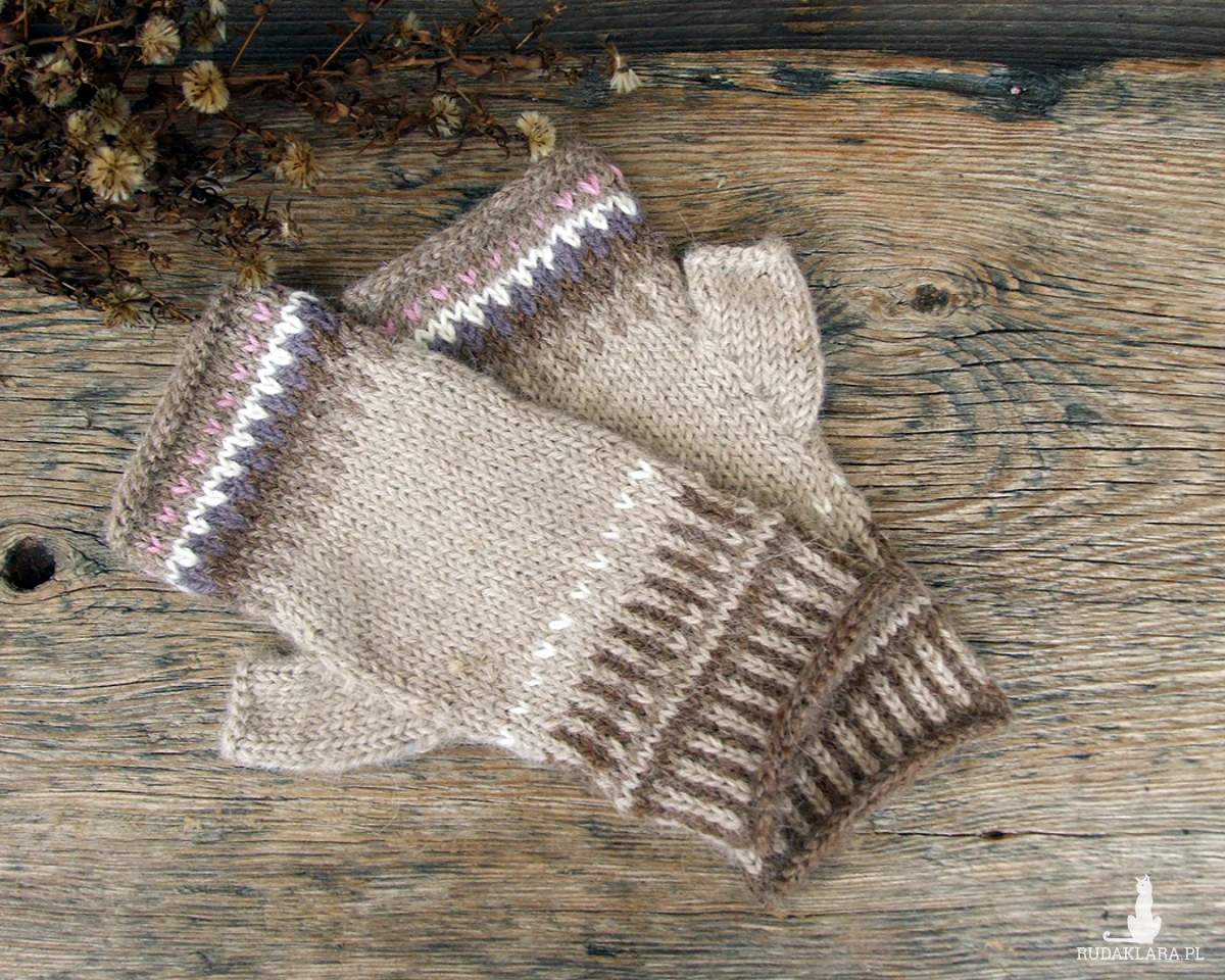 Mitenki z Alpaki - cieplutkie, miłe dla skóry, niegryzące. Kolory połączyłam gładkim wzorem żakardowym, mitenki są bezszwowe. Naturalność kolorów pięknie się łączy z naturalnością alpaki.