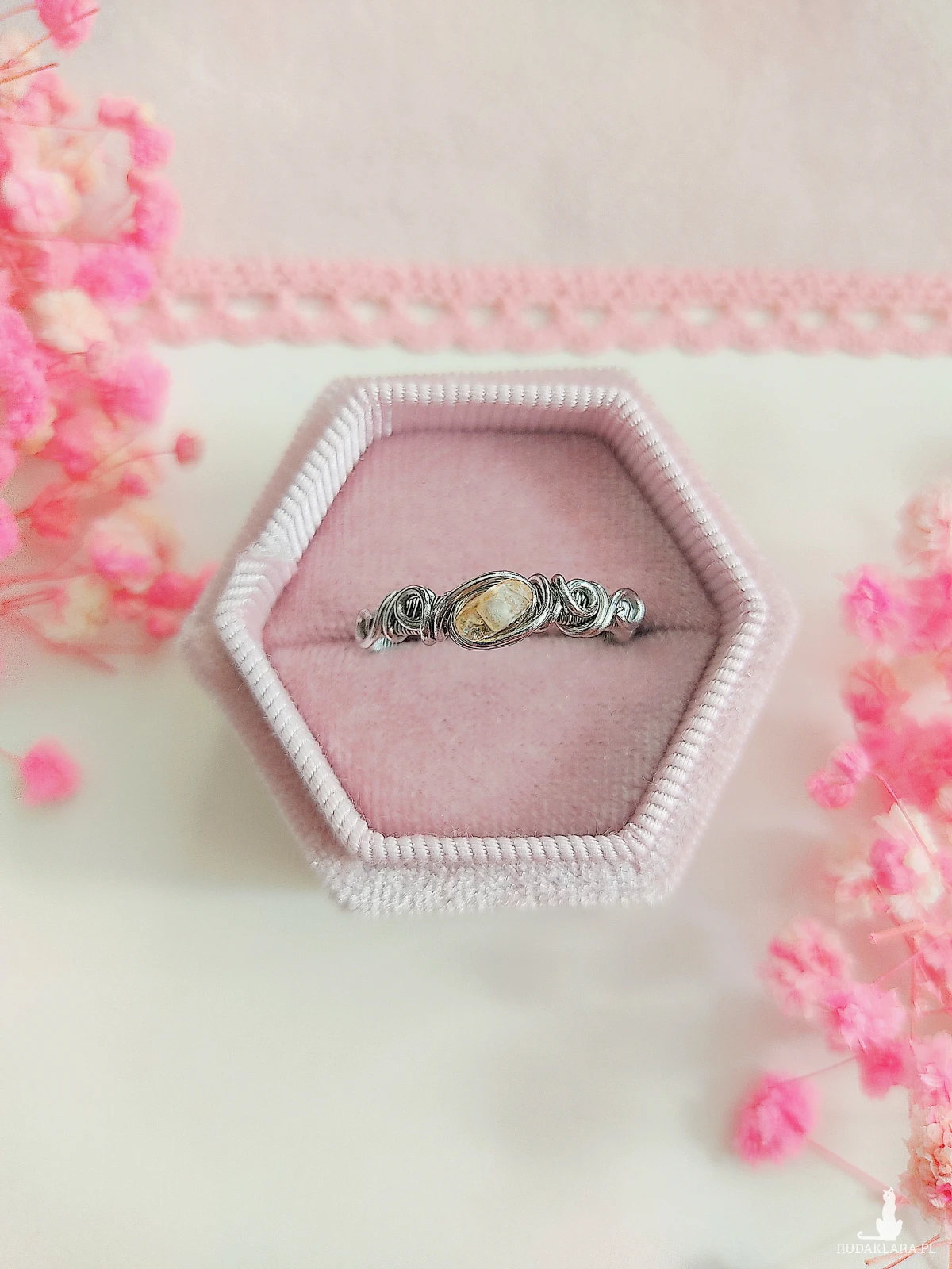 Pierścionek z cytrynem wykonany ze stali chirurgicznej metodą wire wrapping to wyjątkowa biżuteria handmade, która łączy elegancję z naturalnym pięknem kamieni szlachetnych. Kamień cytryn, od wieków kojarzony z energią słońca, obfitością i pozytywną energią. Jego złocisto-żółta barwa sprawia, że biżuteria z cytrynem przyciąga spojrzenia i dodaje blasku każdej stylizacji.
