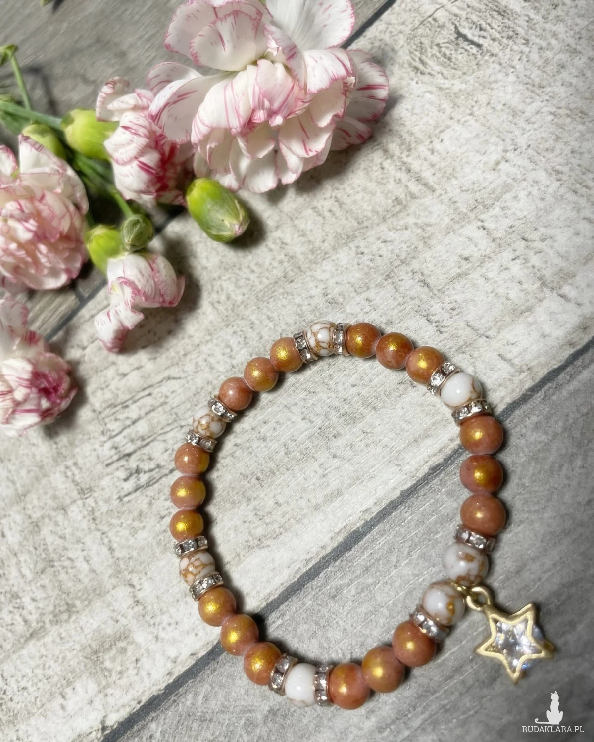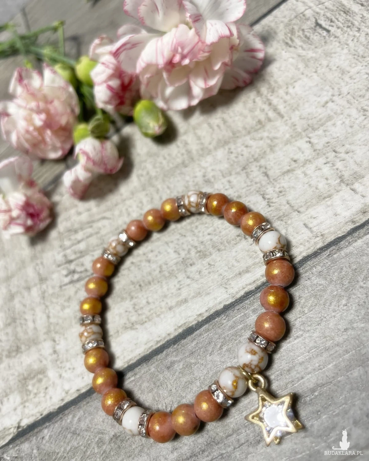 Jadeit z dodatkiem howlitu i zawieszką gwiazdką
