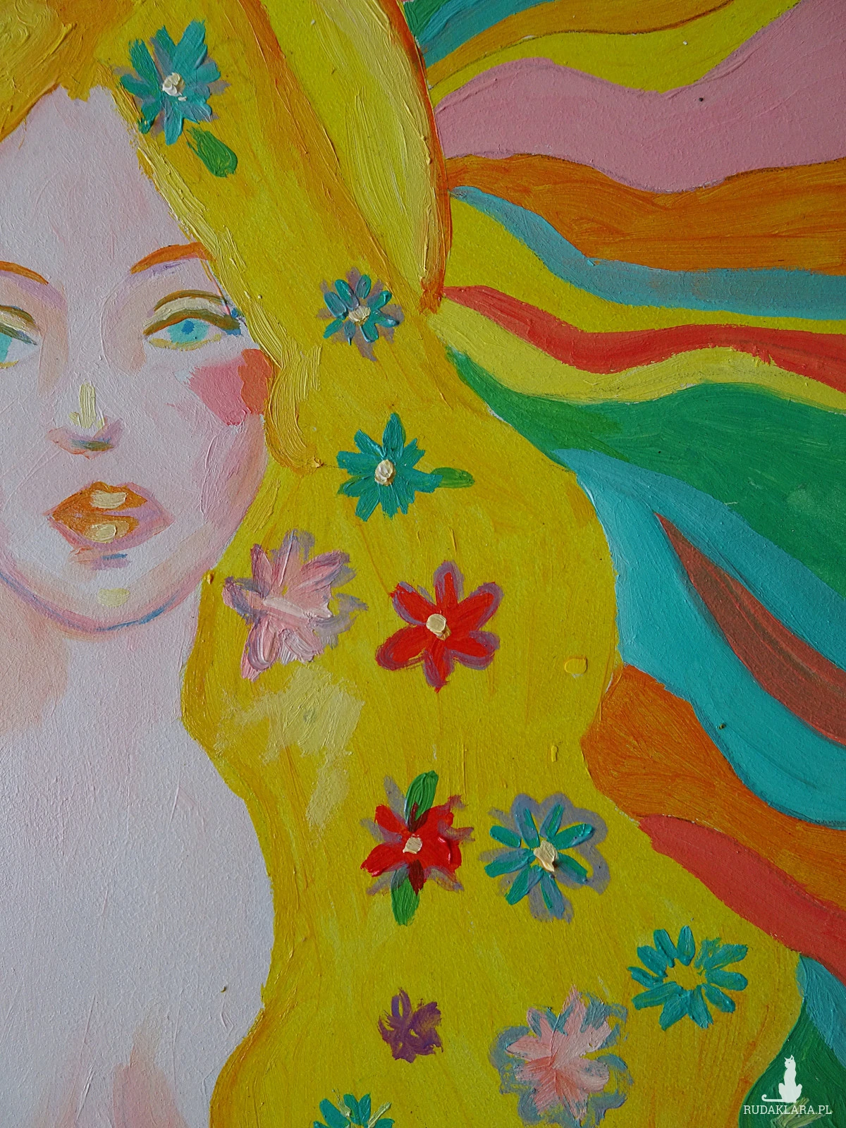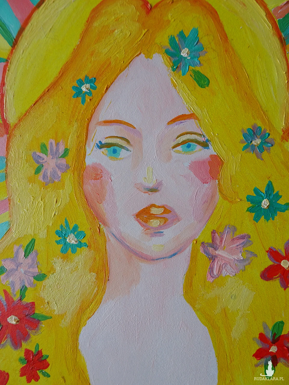 Obraz namalowany olejami na płycie o wymiarach: 30/40 cm. Świetnie może być eksponowany w nowoczesnych wnętrzach o stonowanej kolorystyce. Swoimi barwami może rozjaśnić takie wnętrza, w oświetleniu dziennym, jak i sztucznym.