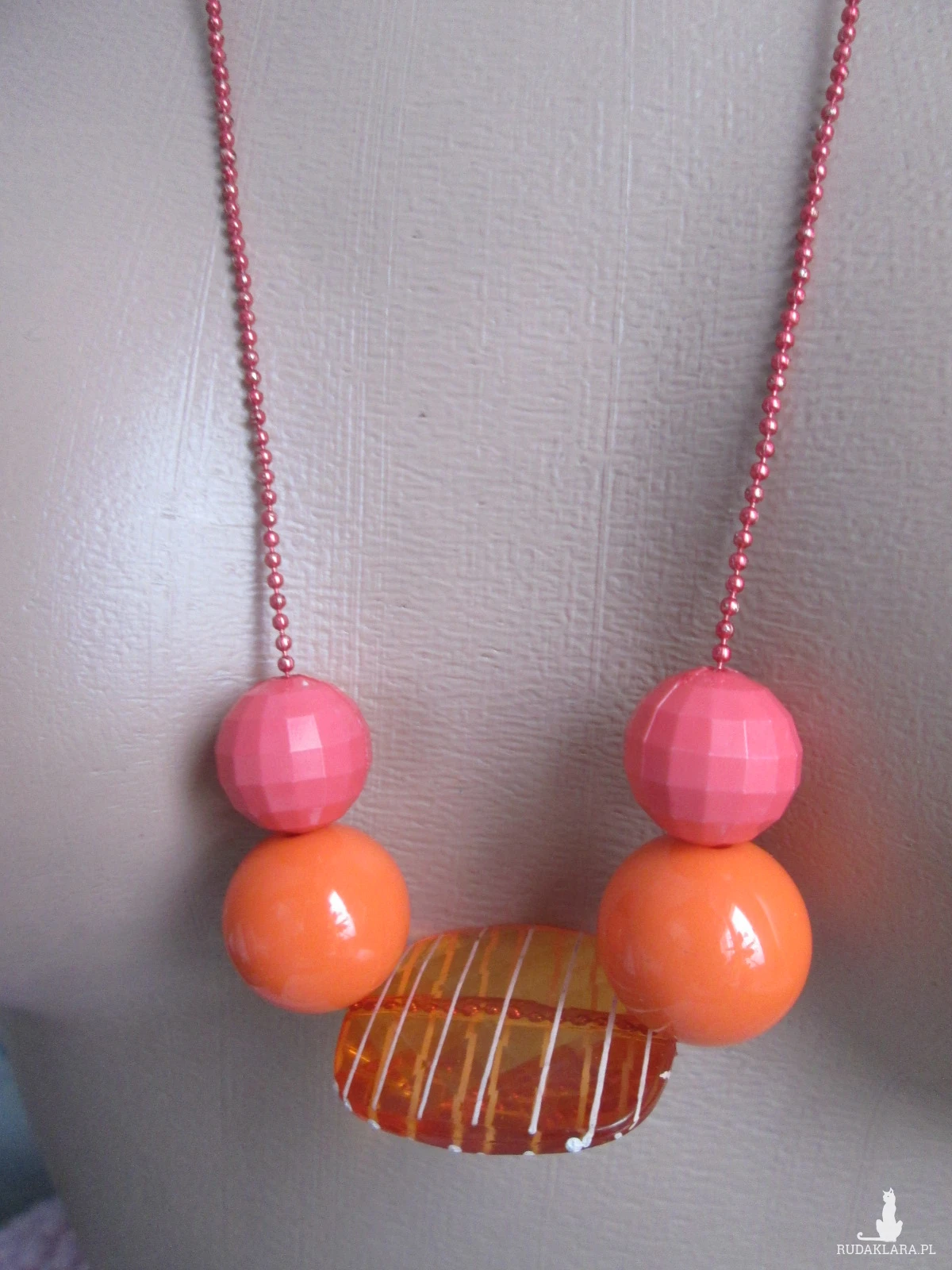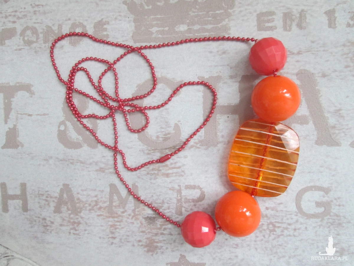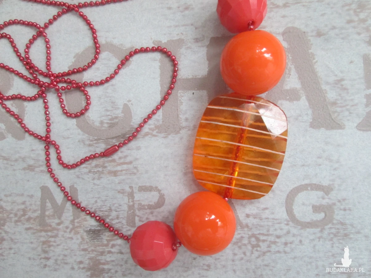 Kolory:łańcuszek koloru koralowo-pomarańczowego,koraliki pomarańczowe