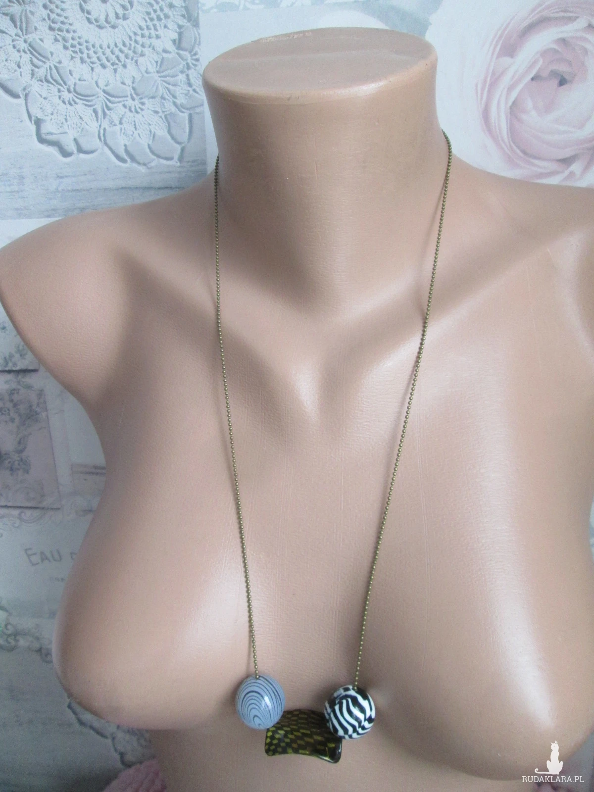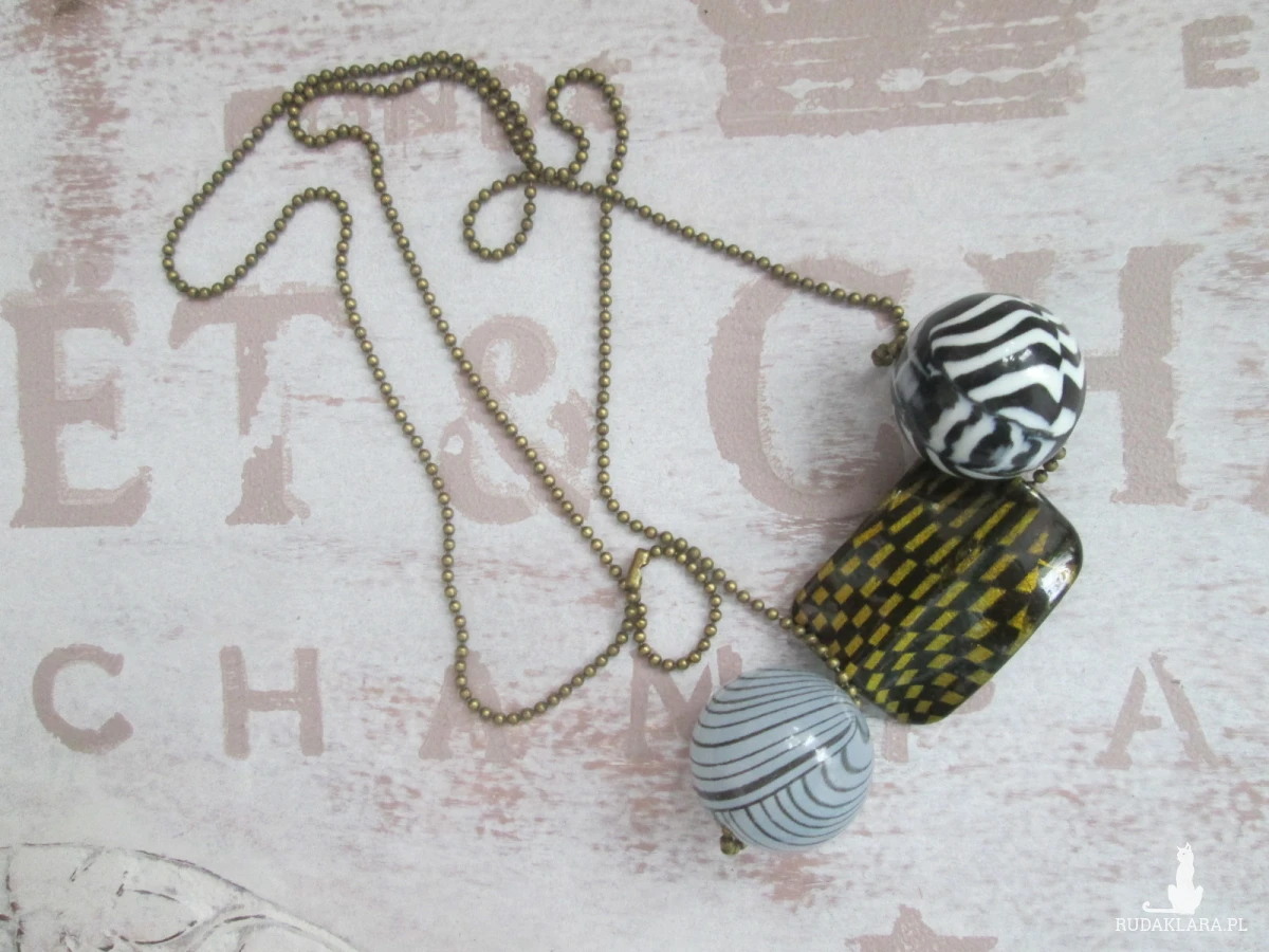 Kolory:łańcuszek koloru starego złota,stylowe koraliki:kolory biały,czarny,szary,złoty