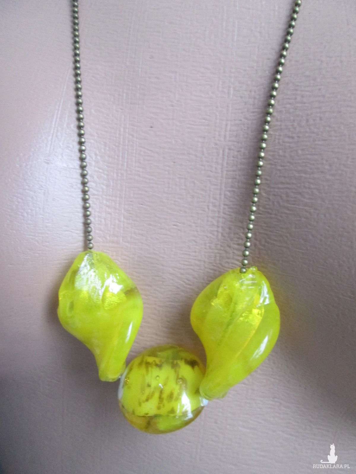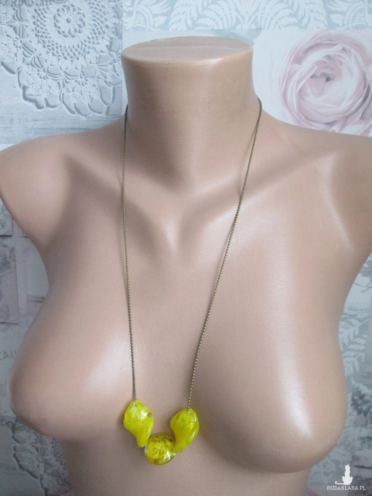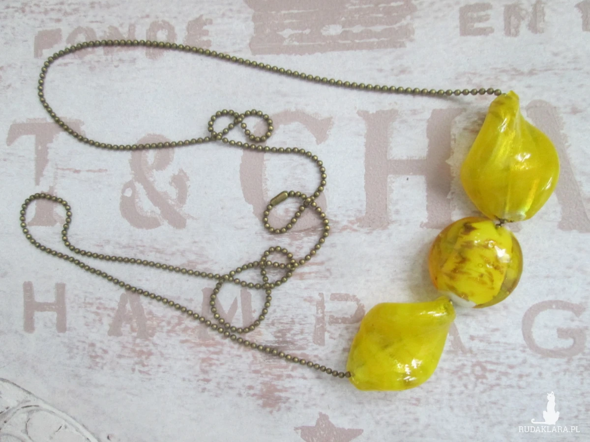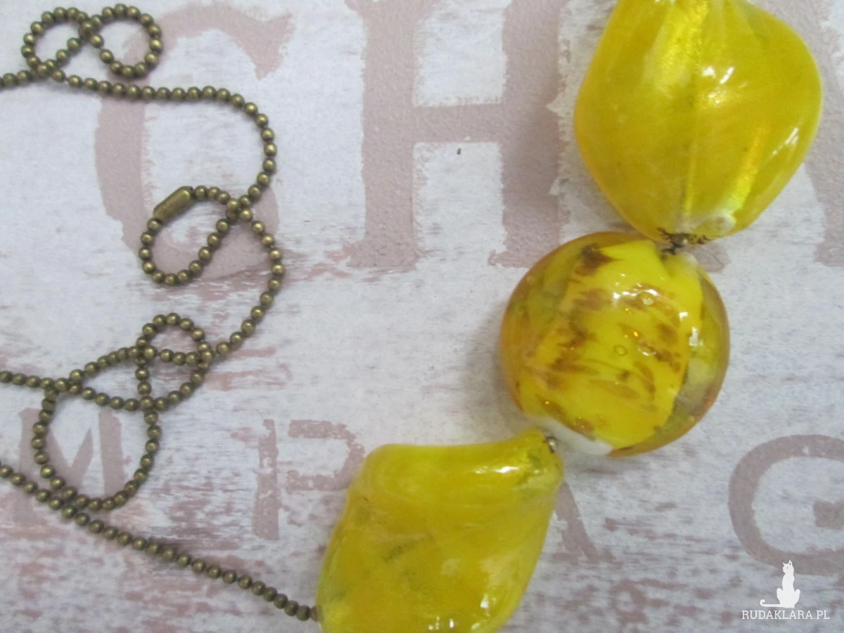 Kolory:łańcuszek koloru starego złota,koraliki cieniowane-cytryna,brąz