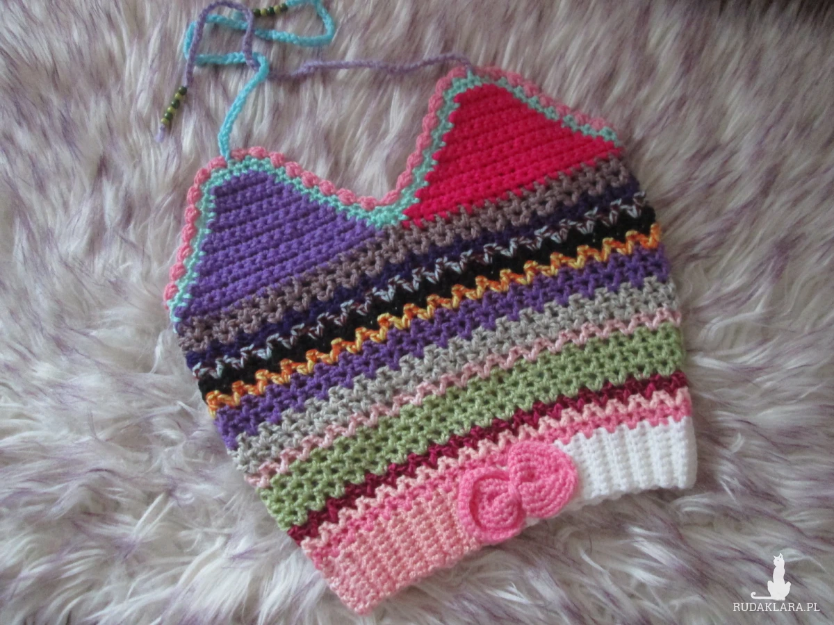 -pas 52 cm,rozciąga się do 58 cm(z przodu,na pasku,szydełkowa kokarda)
