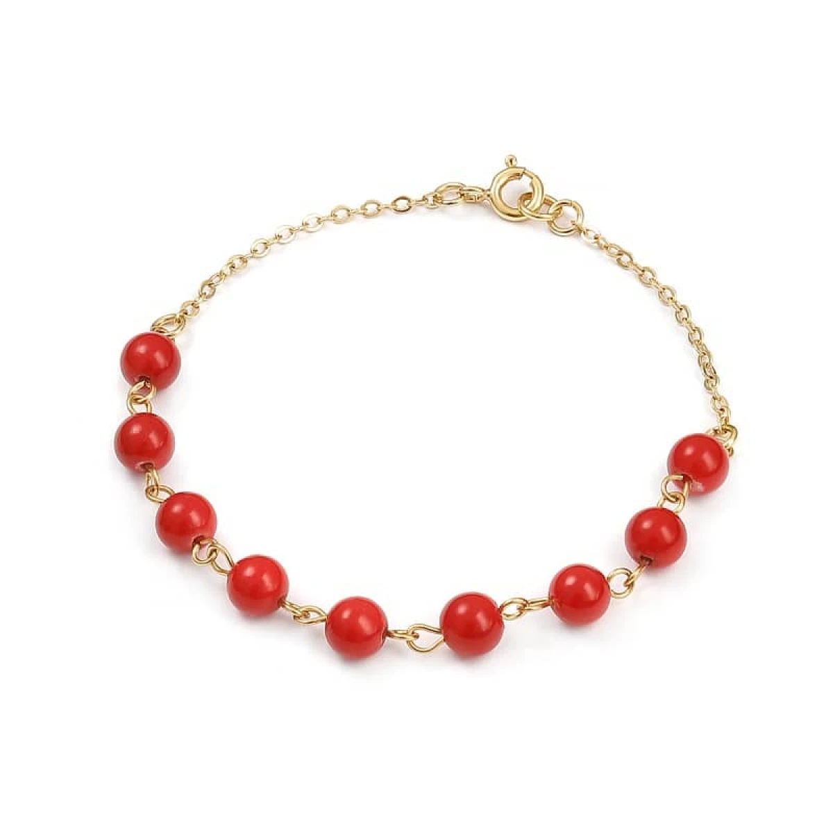 Bransoletka została wykonana z kul czerwonego korala oraz pozłacanych elementów wykończeniowych. Zapinana na praktyczne zapięcie. Wpasuje się w wakacyjne stylizacje lub będzie trafionym prezentem dla bliskiej osoby, która nie boi się odważnych kolorów. Delikatna bransoletka na bazie łańcuszka została wykonana ręcznie w pracowni Artseko.