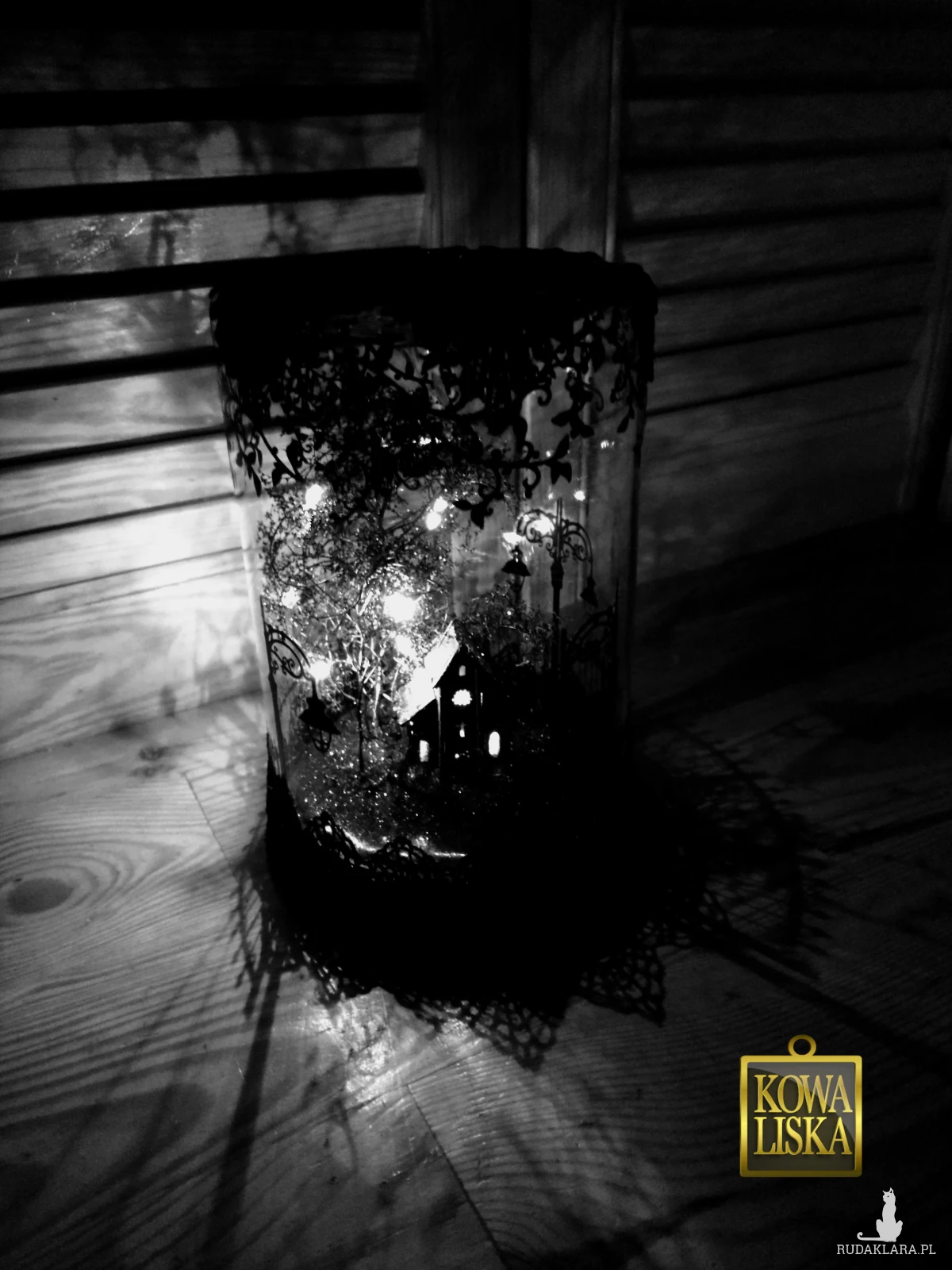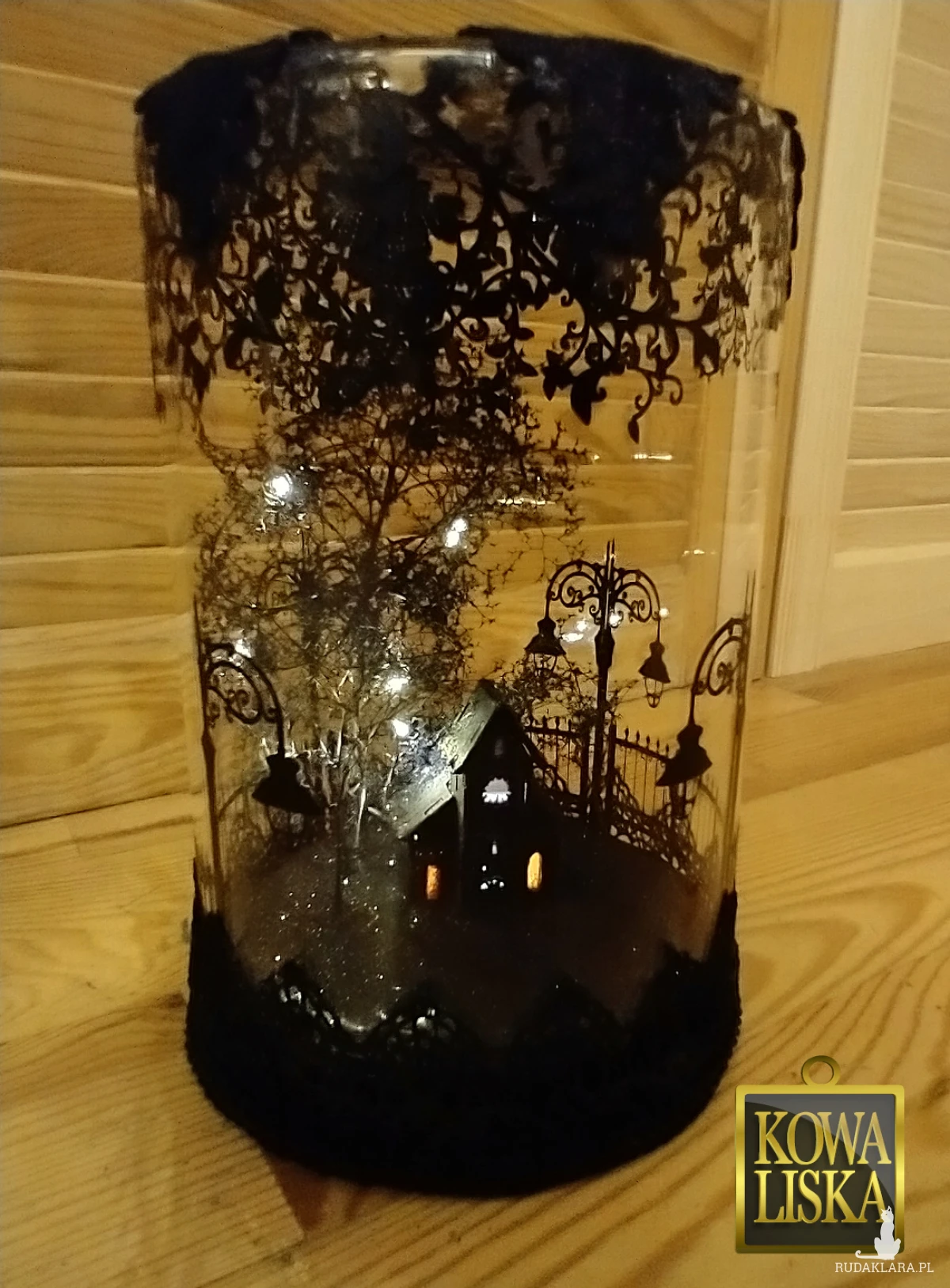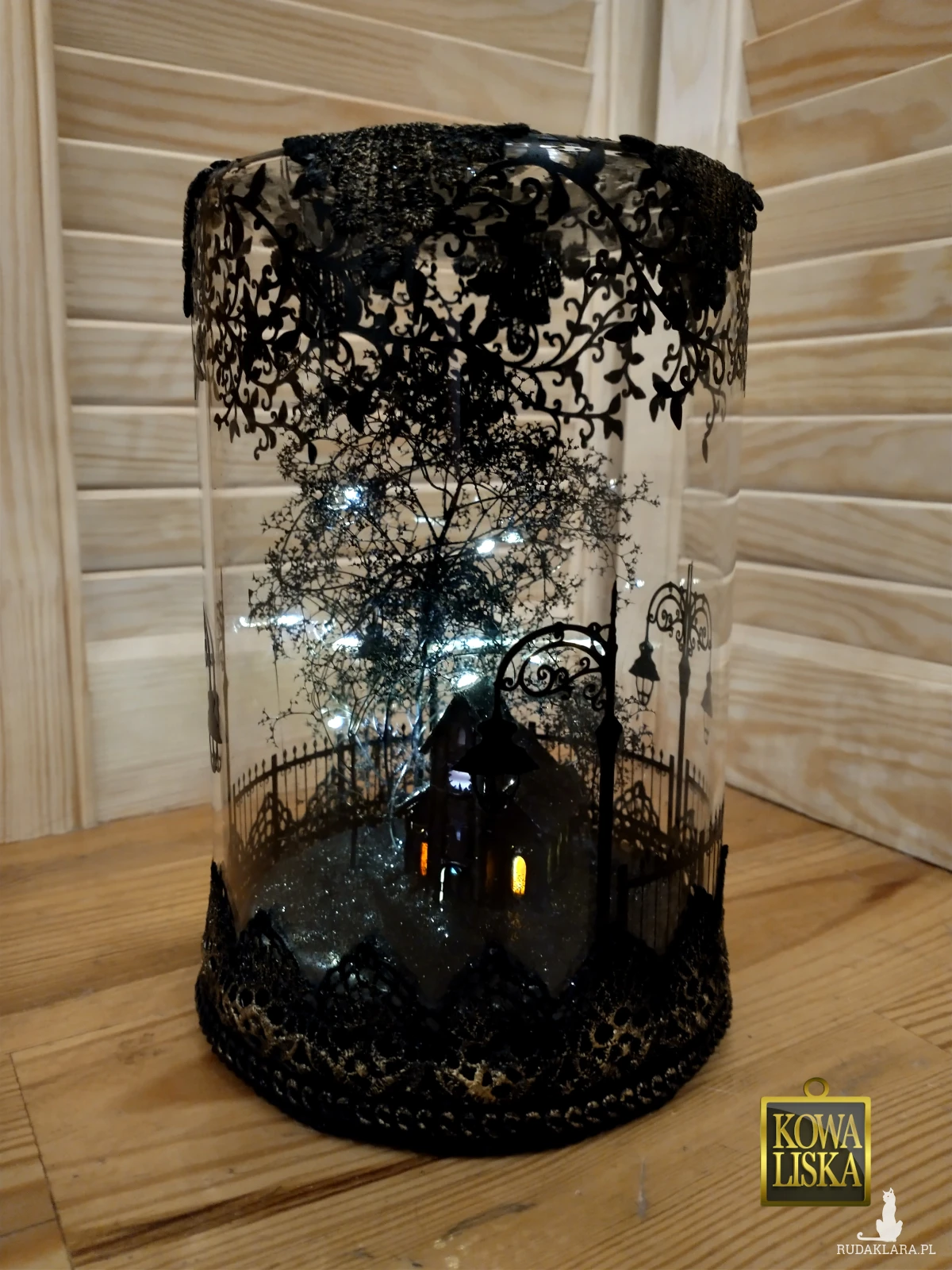 Ręcznie zdobiony, mroczny lampion ze szkła.