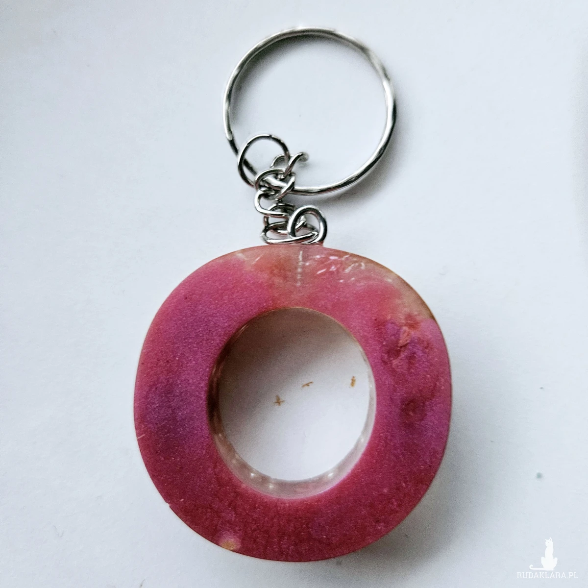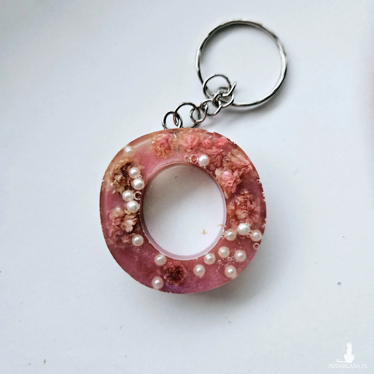 Brelok literka O ŕóżowa z gipsówką i perłami