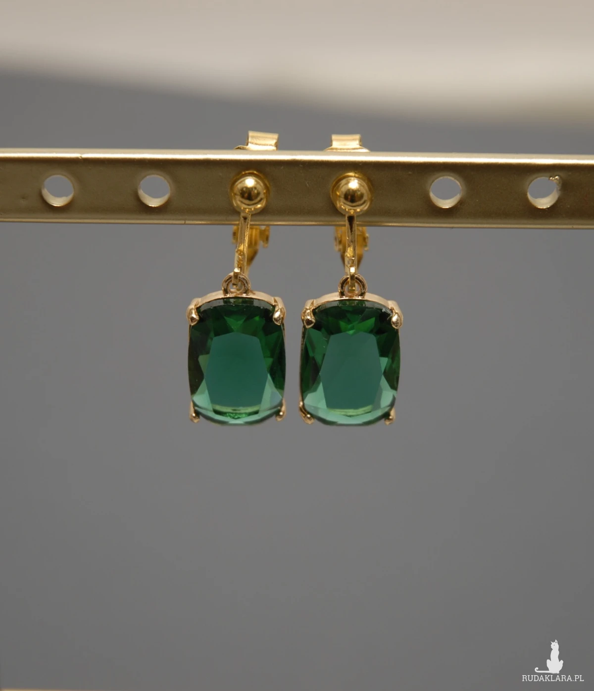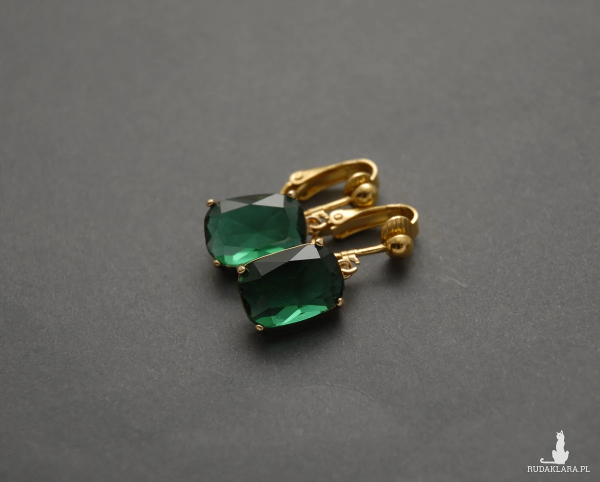 oferuję kolczyki lub klipsy ozdobione szklanym, fasetowanym kaboszonem. Kaboszon ma ozdobną oprawę.