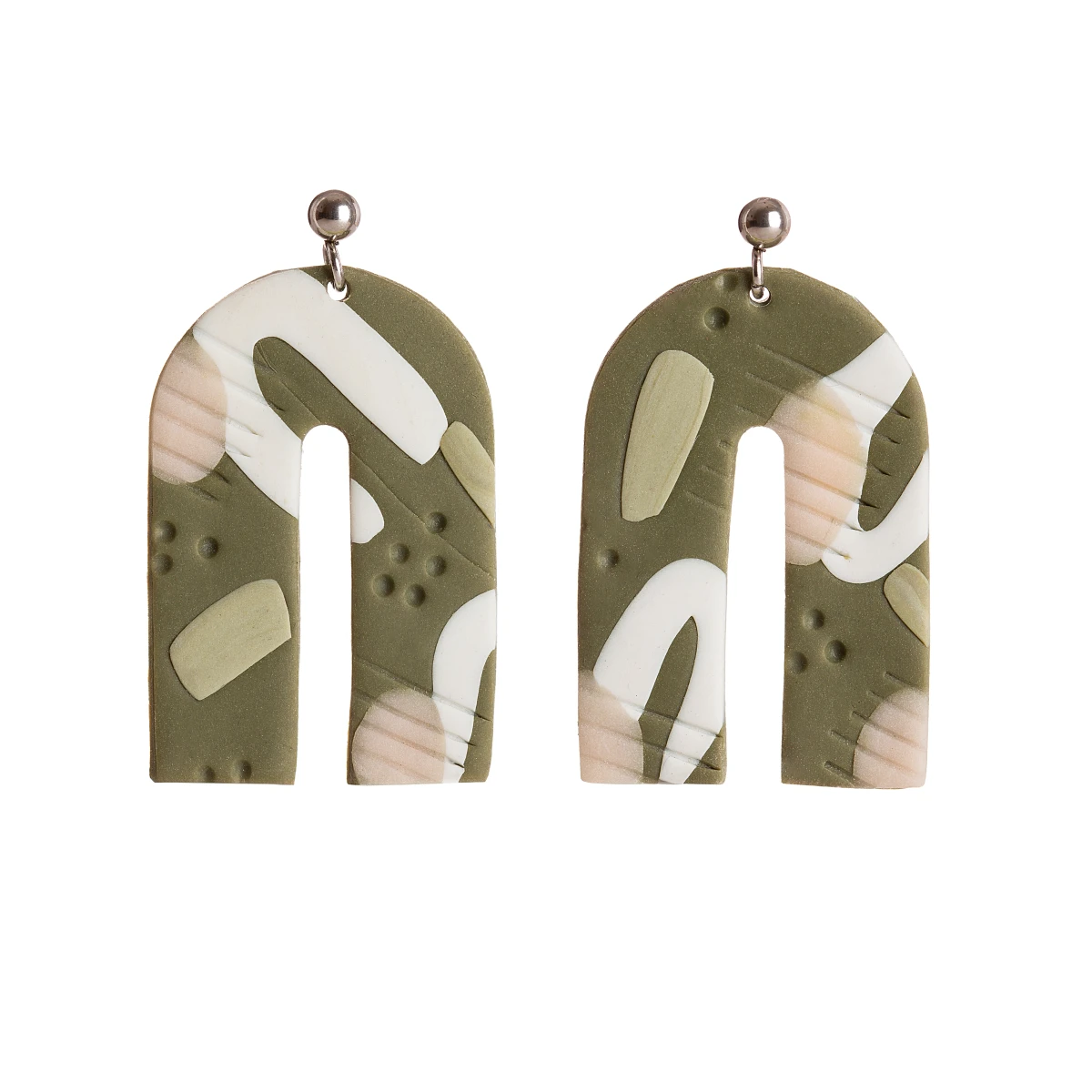 Ręcznie wykonane kolczyki łuki z unikatowymi, abstrakcyjnymi i nieregularnymi wzorami.
