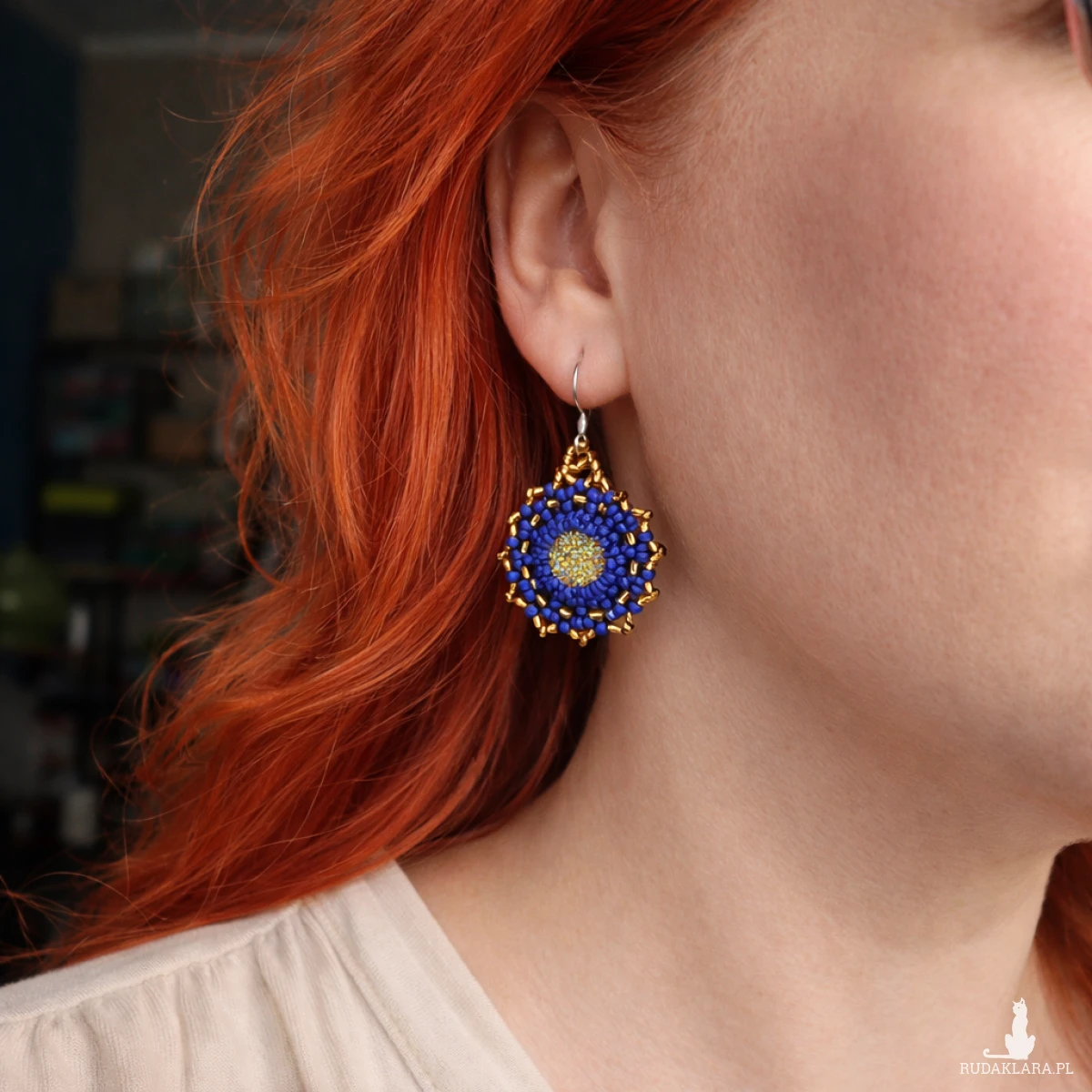 Biżuteria została wykonana techniką haftu koralikowego, dzięki czemu kolczyki są lekkie, wygodne i jednocześnie bardzo efektowne.