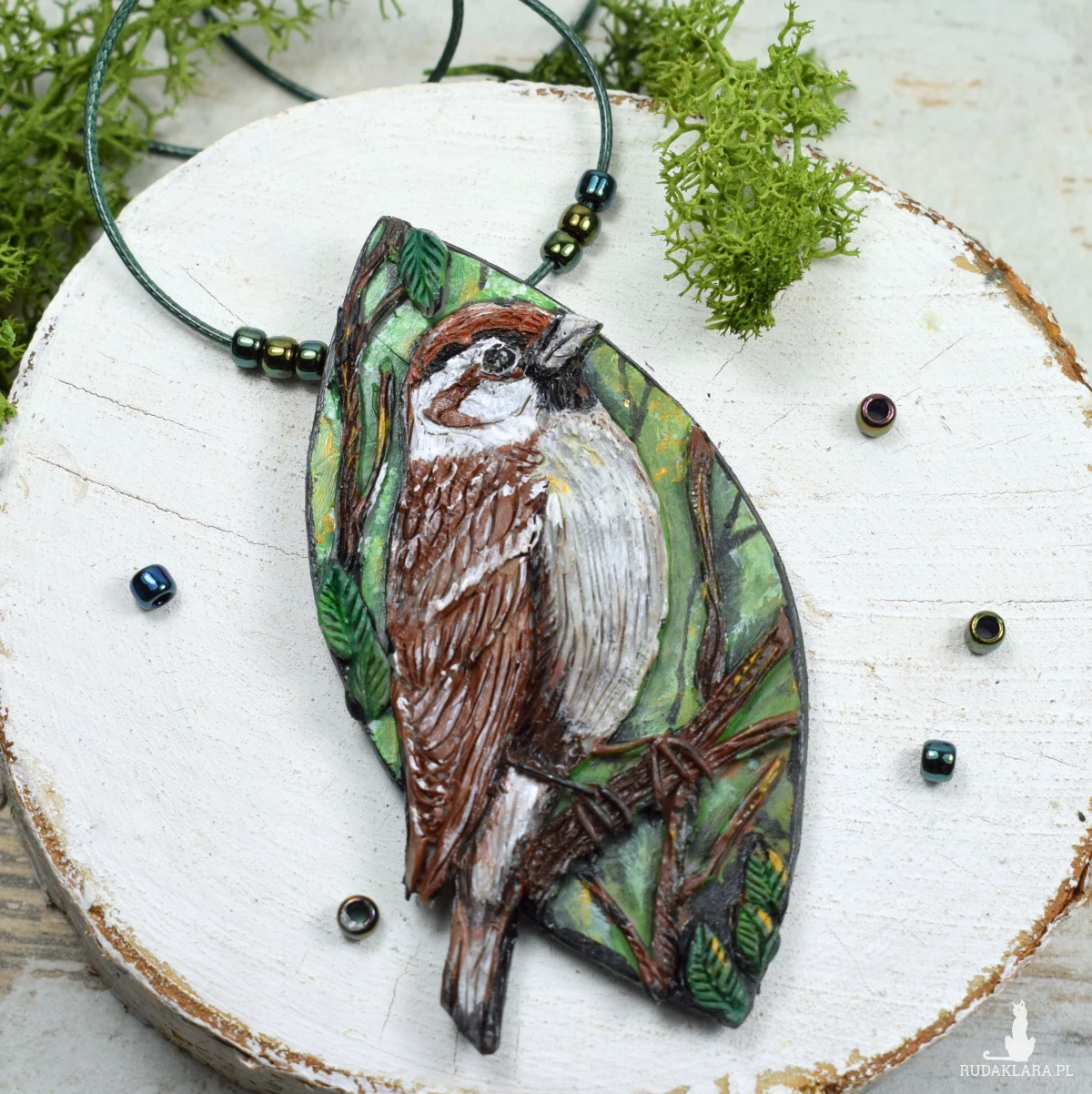 Materiał: glina polimerowa, szklane koraliki, stal szlachetna.