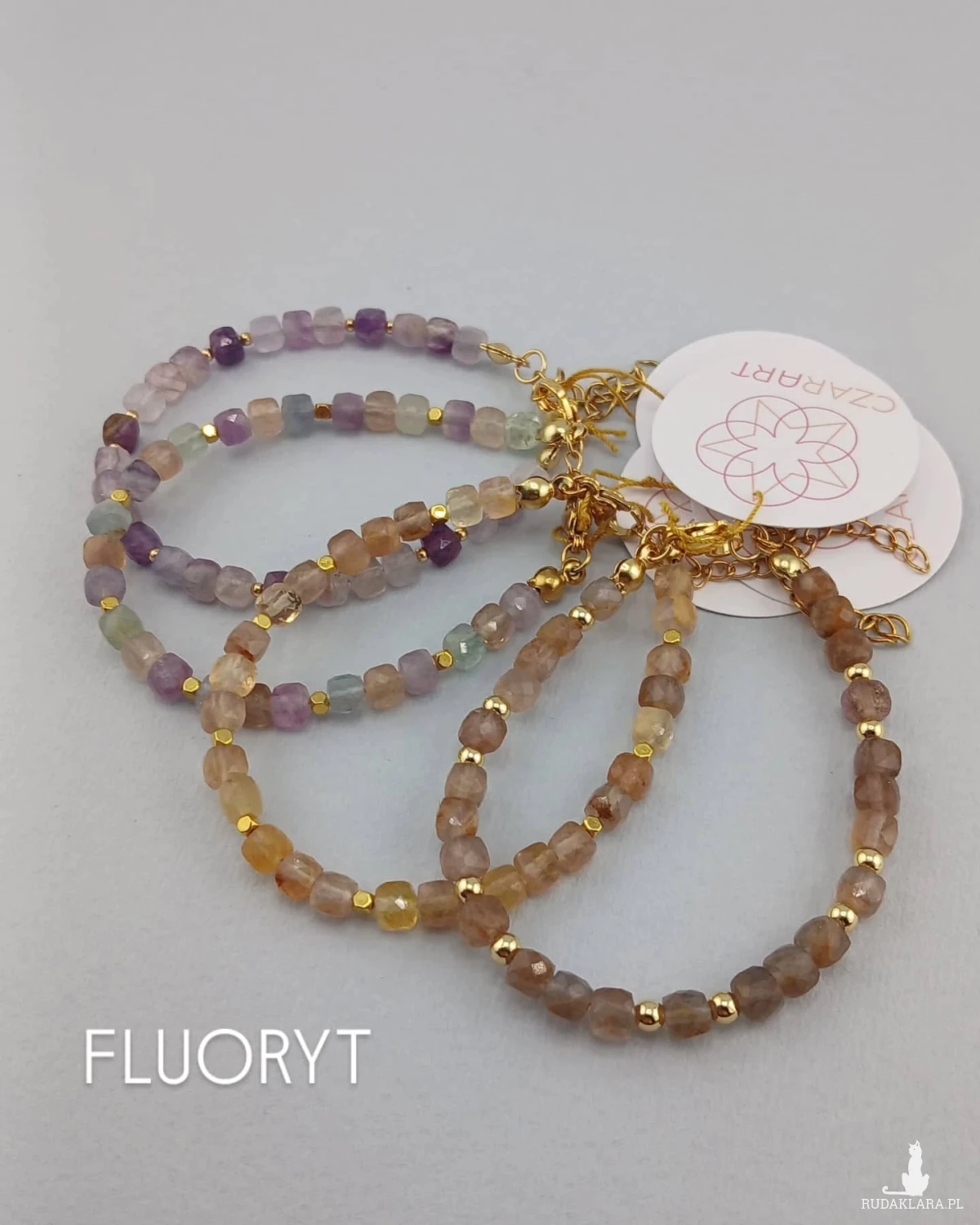 Fluoryt żółto-brązowy, fioletowy, niebieski, zielony - kostka fasetowana 4x4 mm