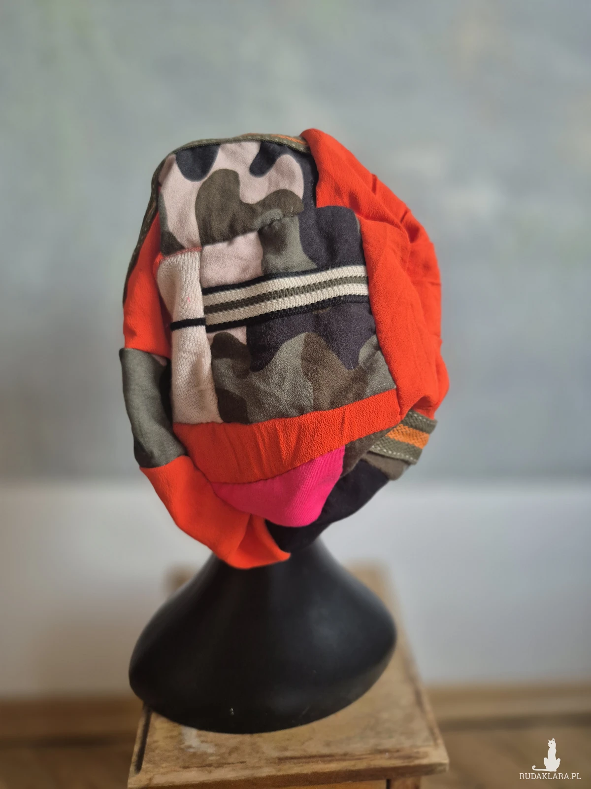Czapka codzienna patchworkowa  kolorowa rozmiar uniwersalny, dla artystki, czapka jest totalnie szalona i zwariowana ,nie zginiesz w tłumie , box a1