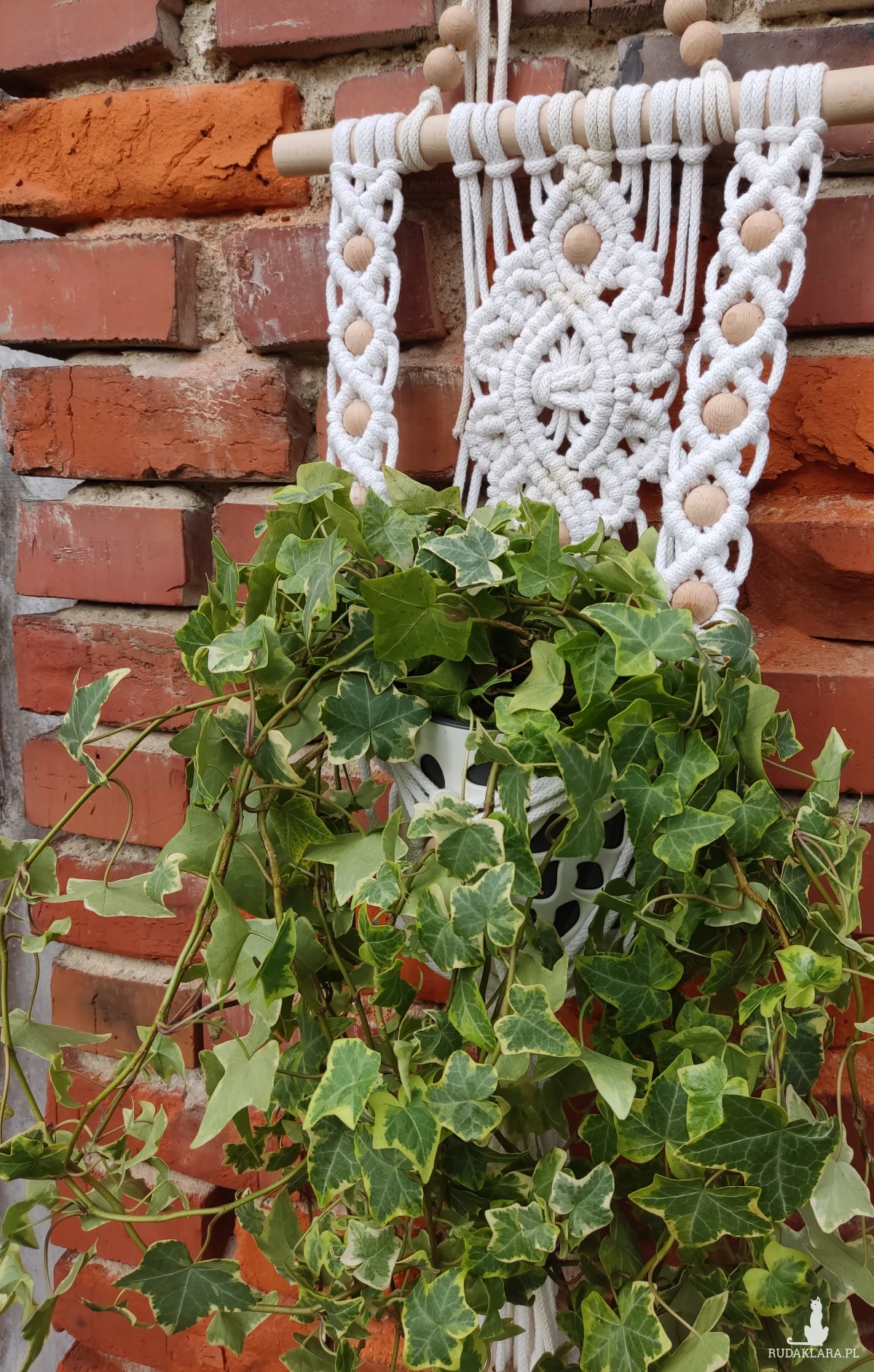 Kwietnik w stylu Boho na jeden kwiat w doniczce, całkowita długość kwietnika 65 cm i szerokość kija 40 cm. Doniczka na zdjęciu jest o średnicy 15 cm większa o kilka cm również będzie odpowiednia. W sprzedaży bez doniczki. Kwietnik w kolorze białym.