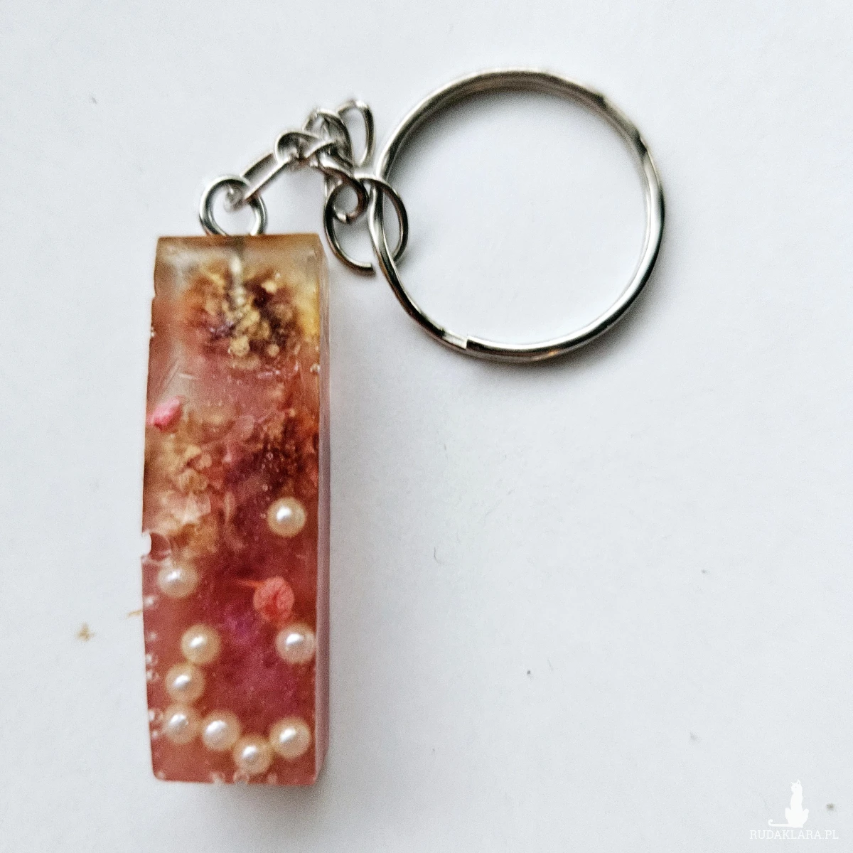 Brelok literka I ŕóżowa z gipsówką i perłami