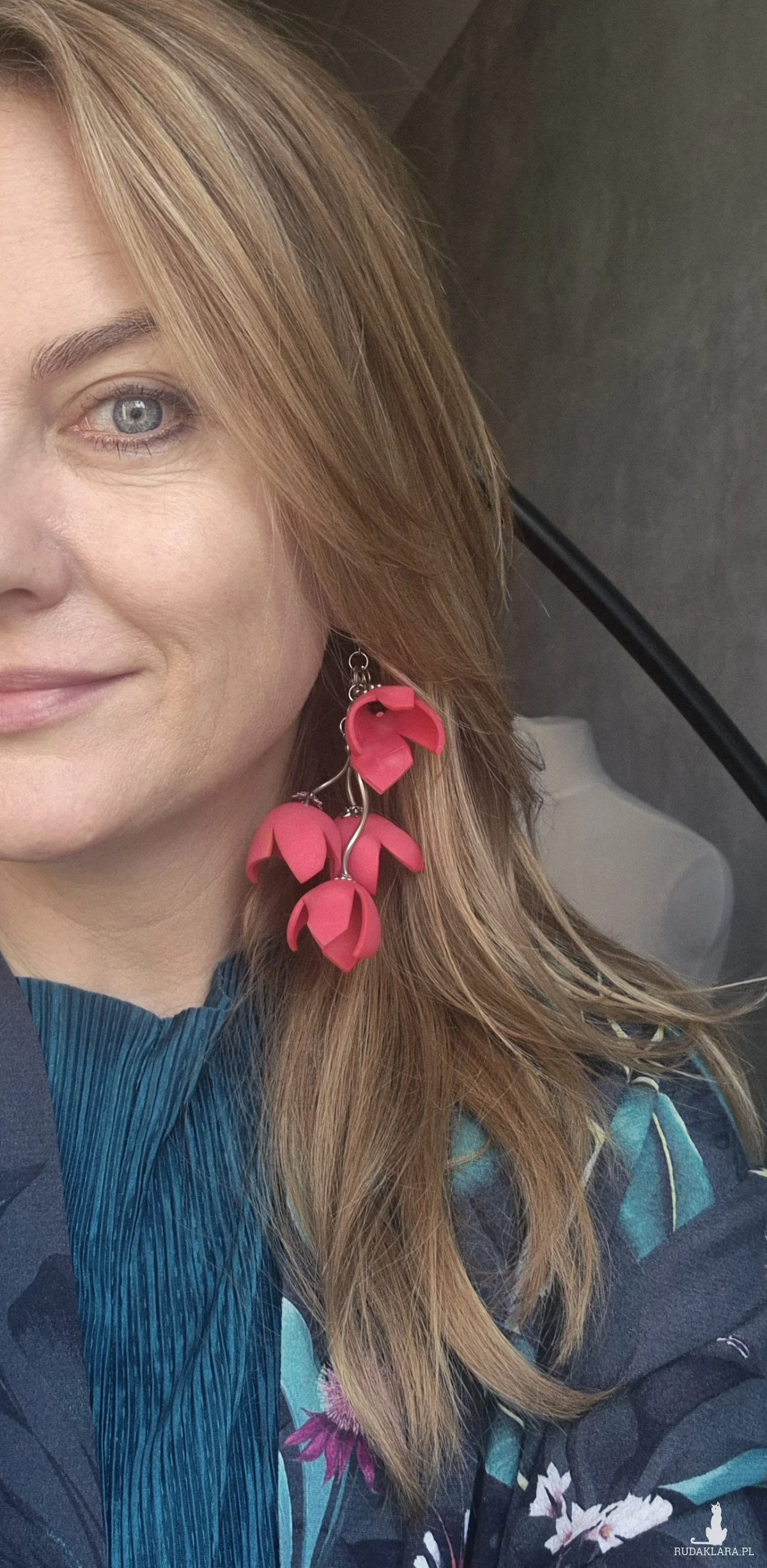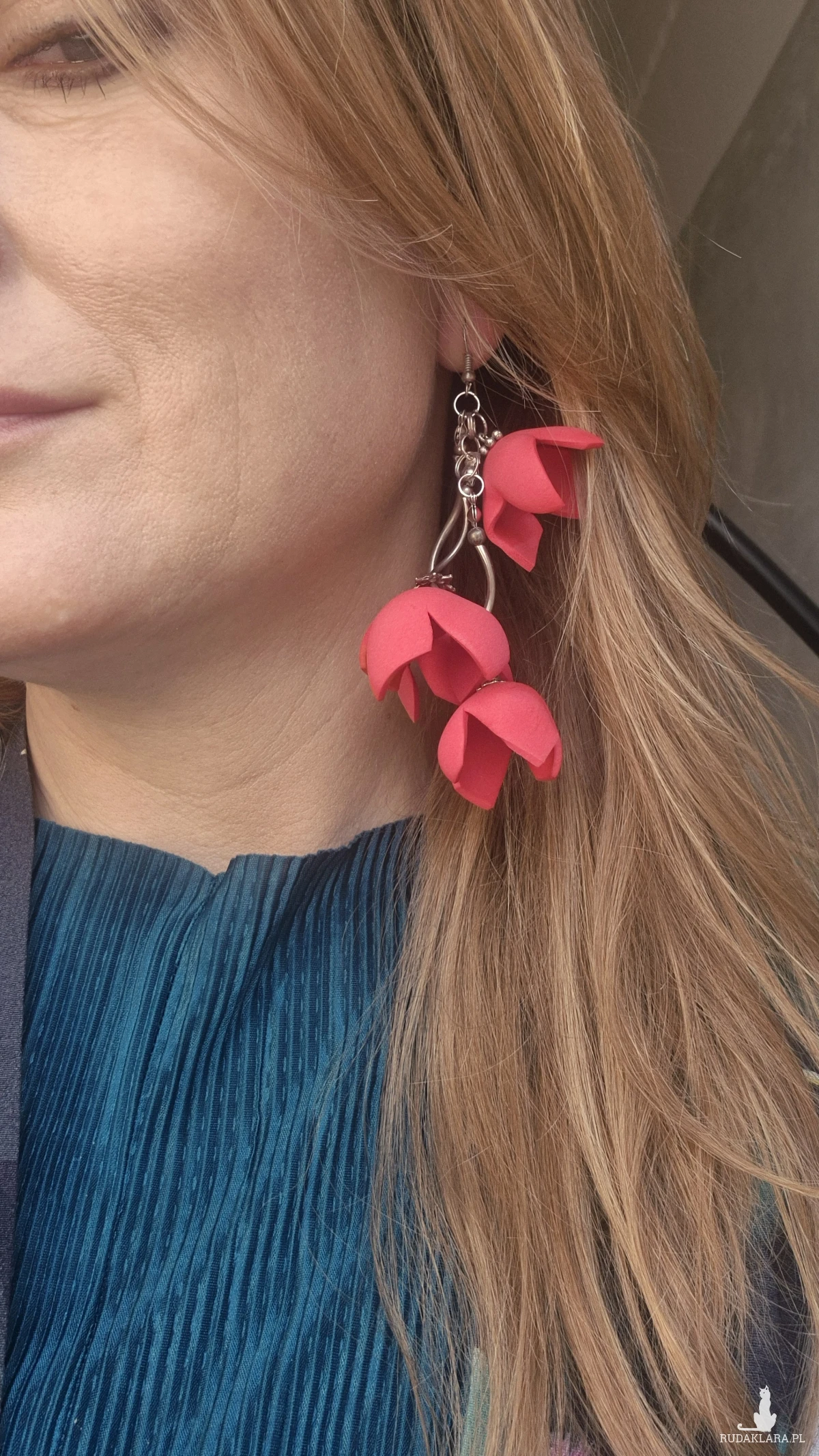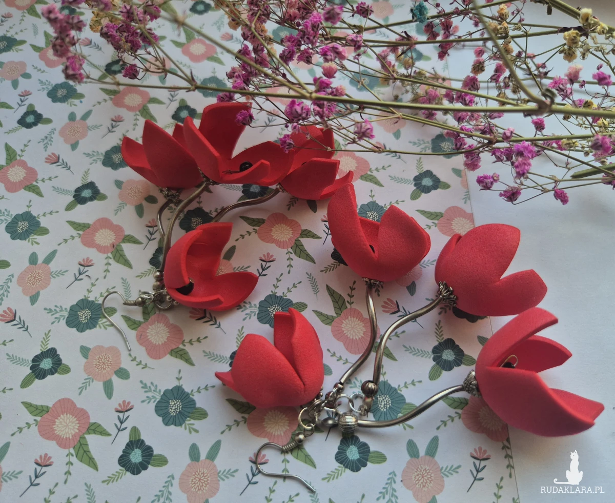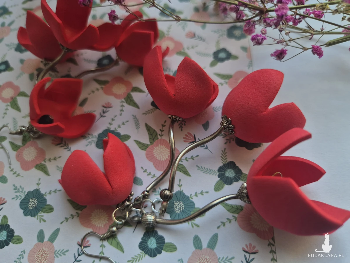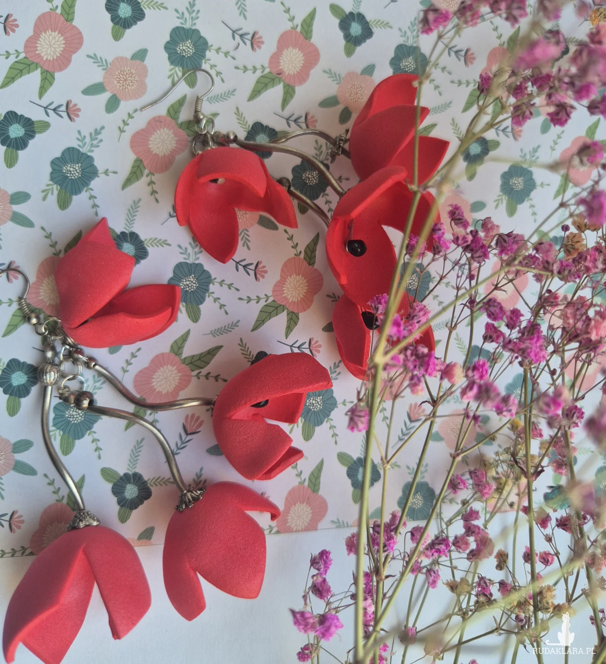 Kolczyki długie kwiaty czerwone tulipany leciutkie pojedyncza sztuka polecam