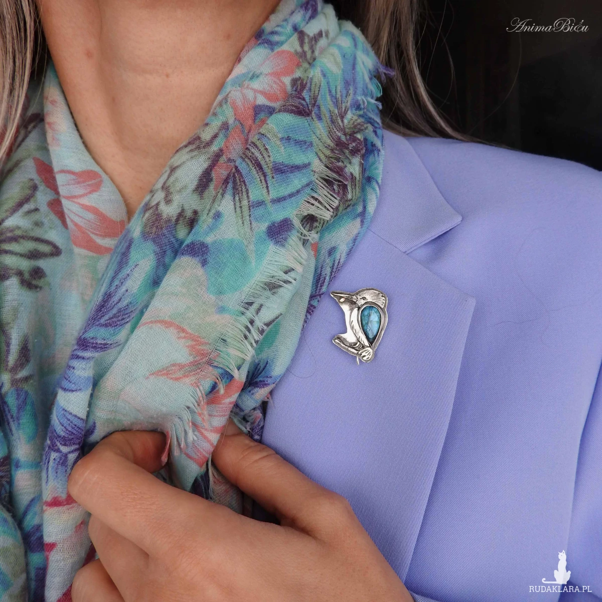 Wykonana od podstaw ręcznie broszka powstała przy użyciu srebra próby 925 i 999