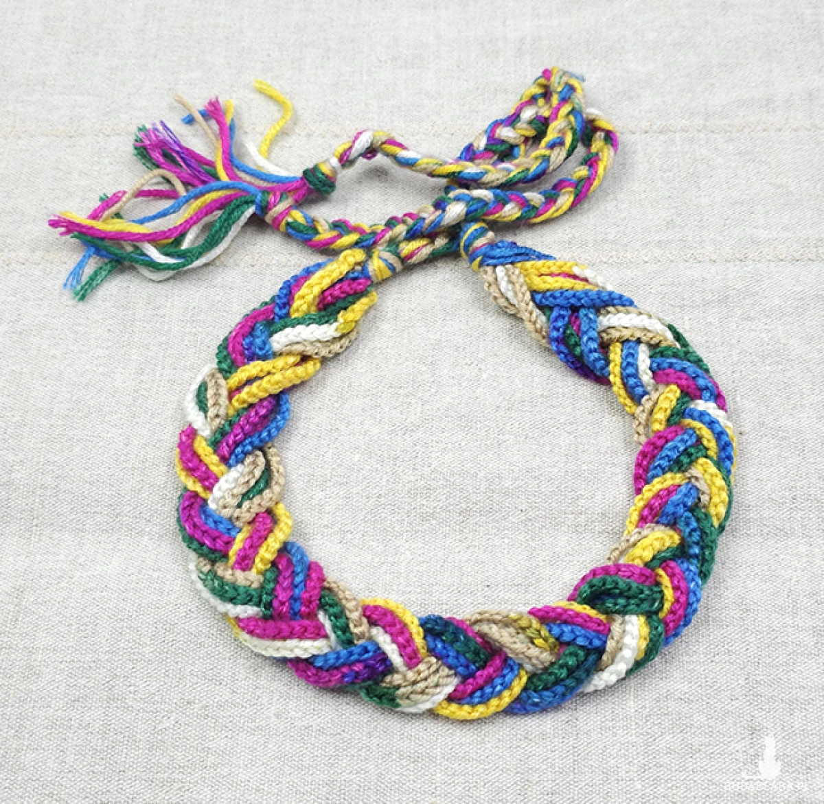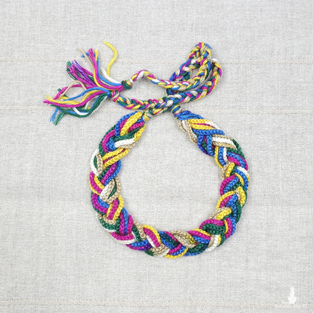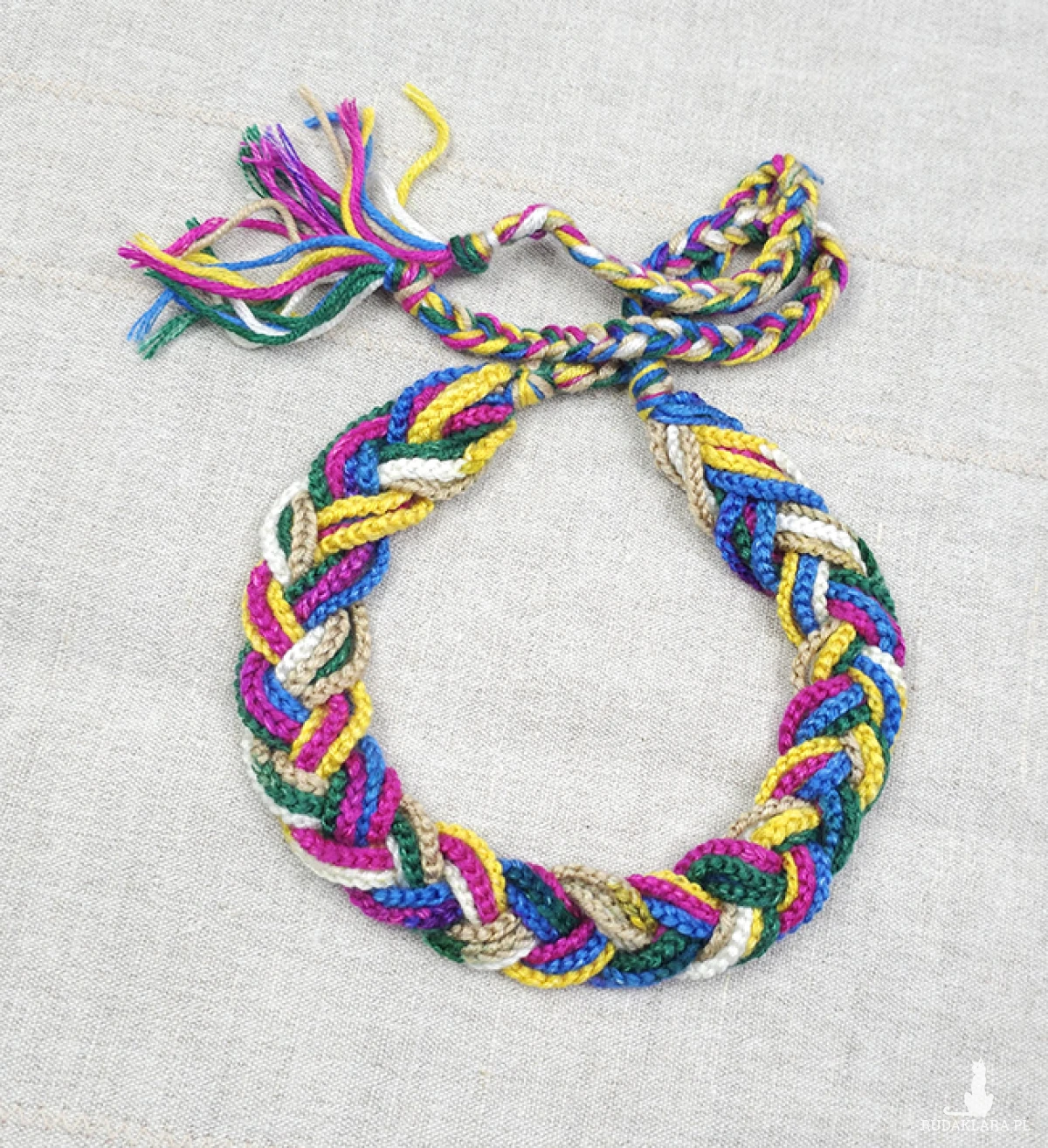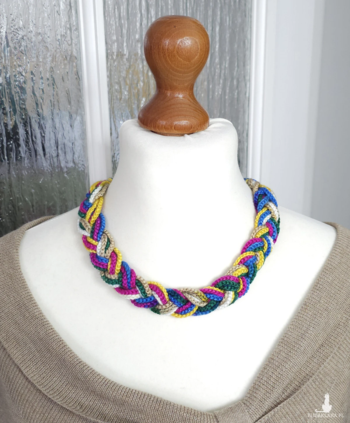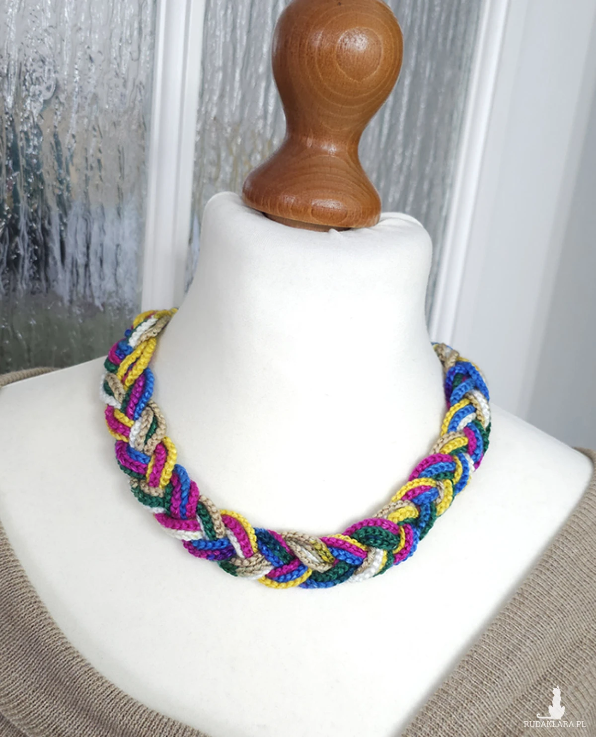 Naszyjnik wykonany z 12 szt. ręcznie plecionych sznurków, splecionych w luźny warkocz.