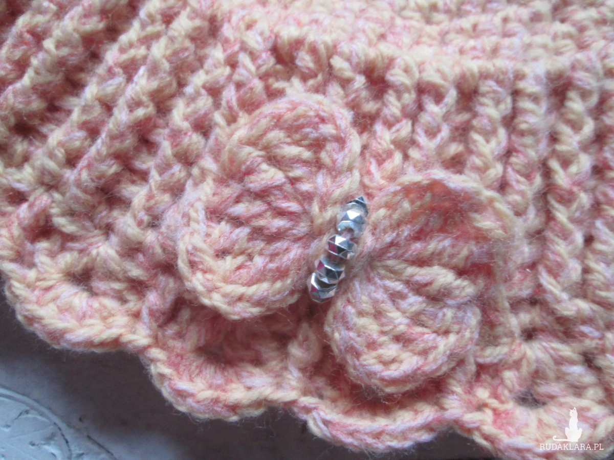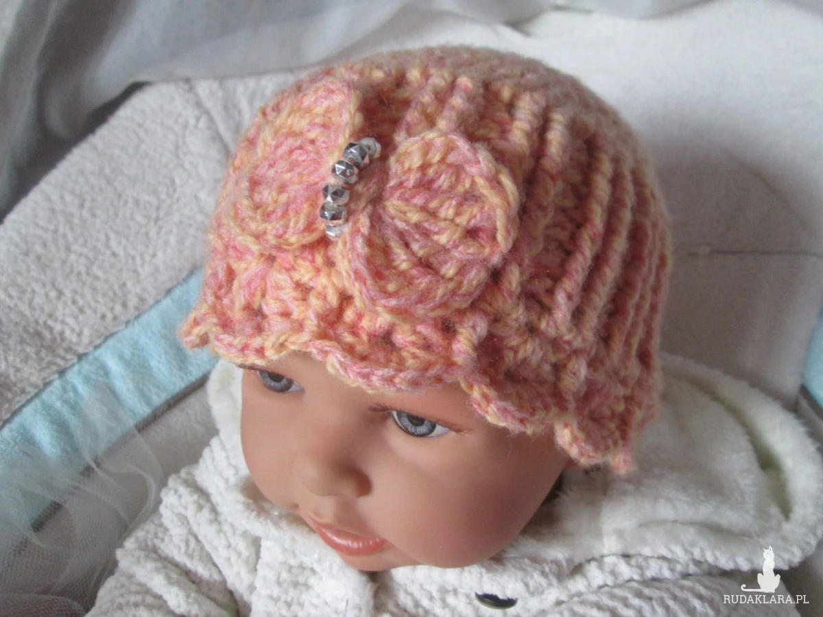 Z anilany i bawełny,z ozdobną kokardką i srebrnymi koralikami