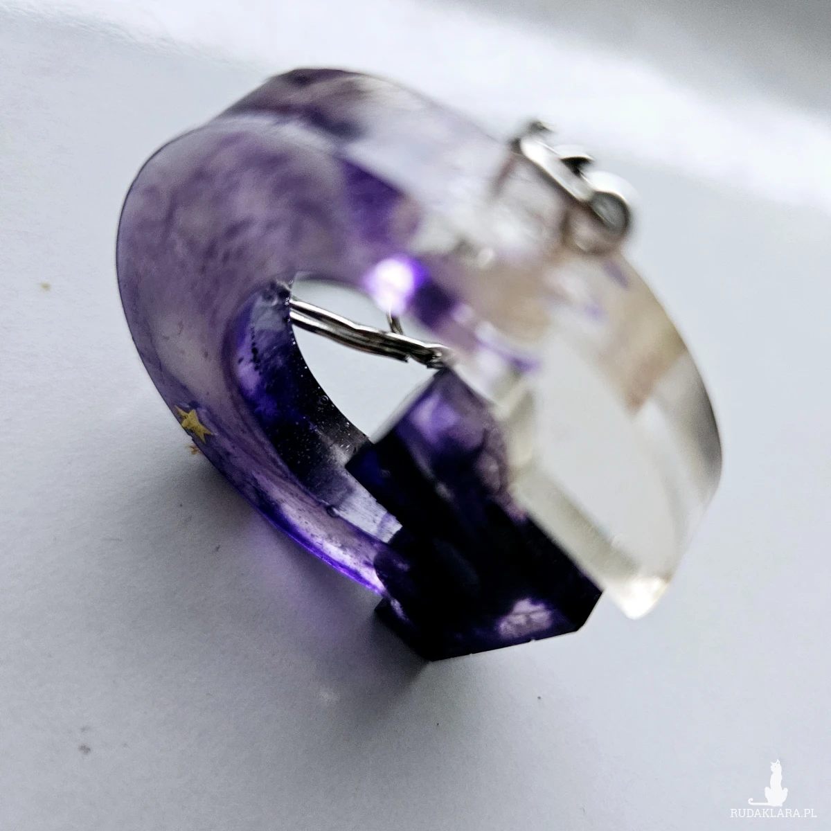 Brelok literka G galaxy fioletowa z bielą i hortensją