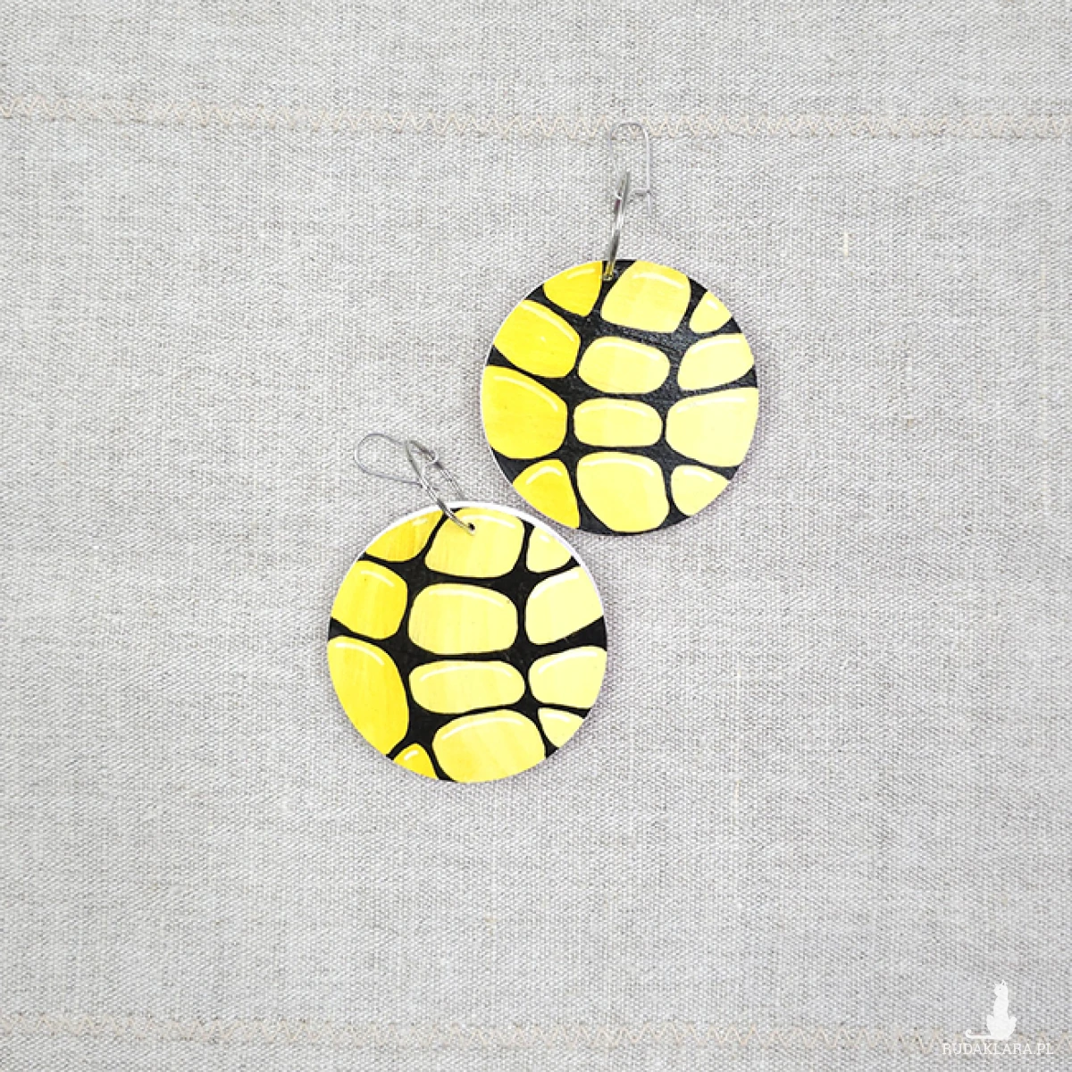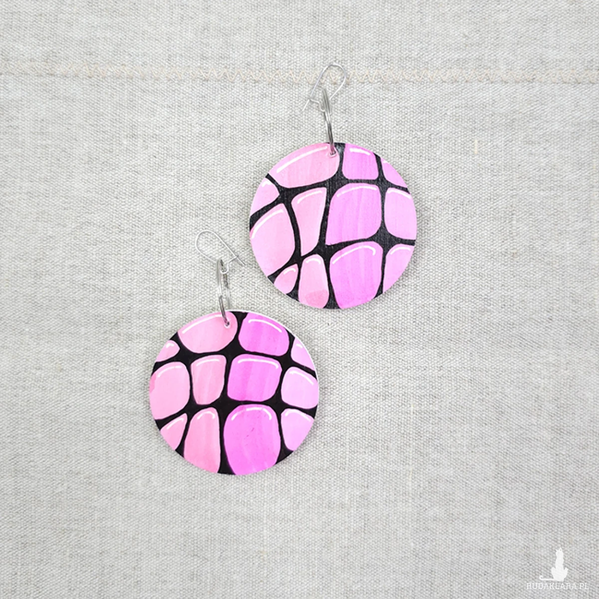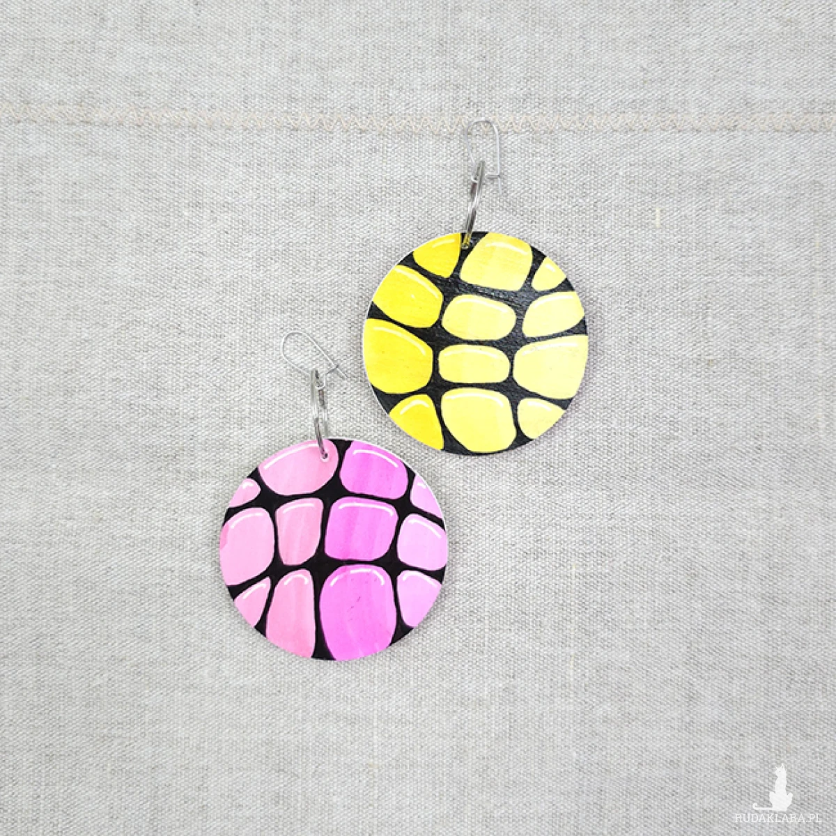 Ręcznie malowane (rysowane) kolczyki. Baza drewniana plus satynowy papier.