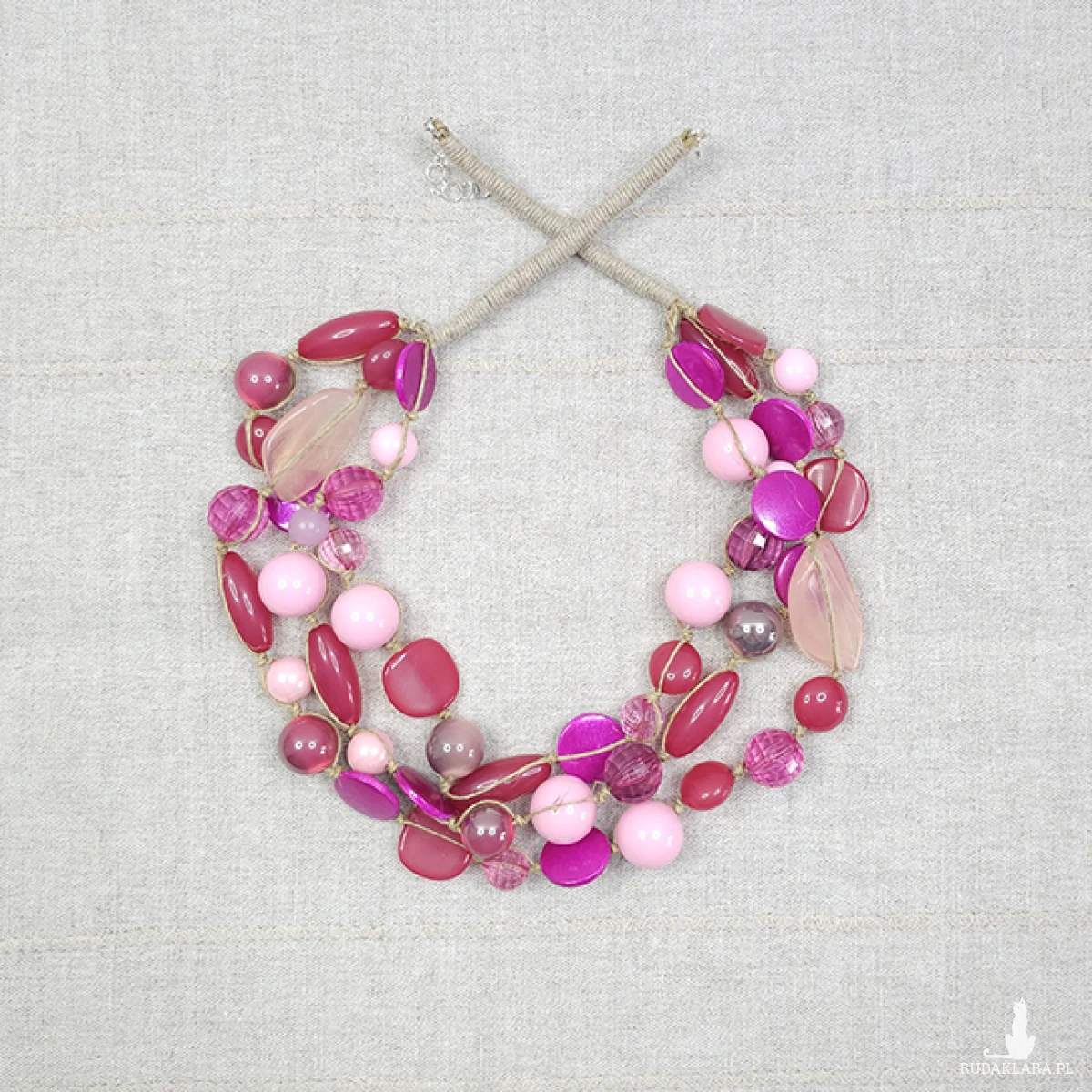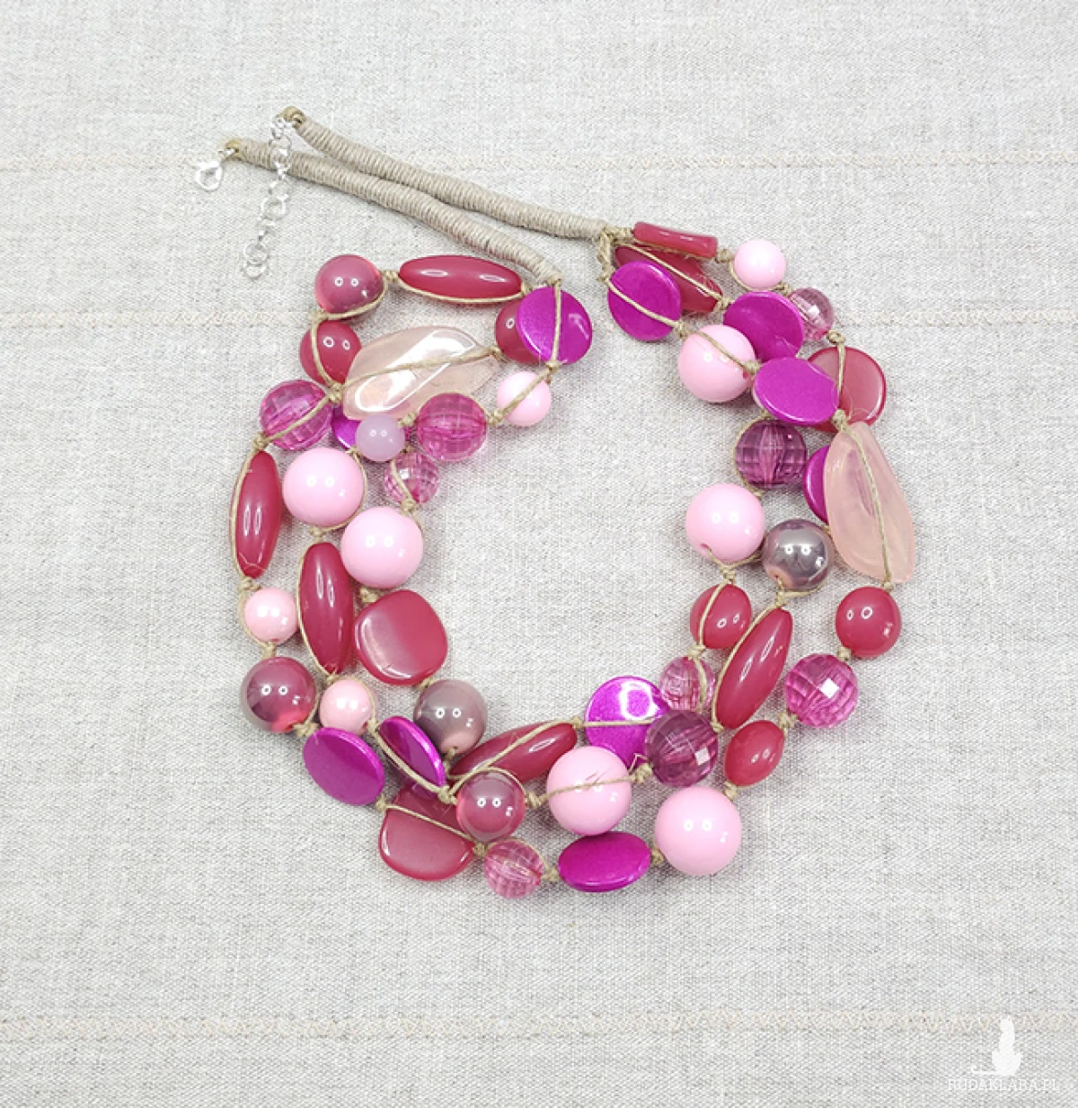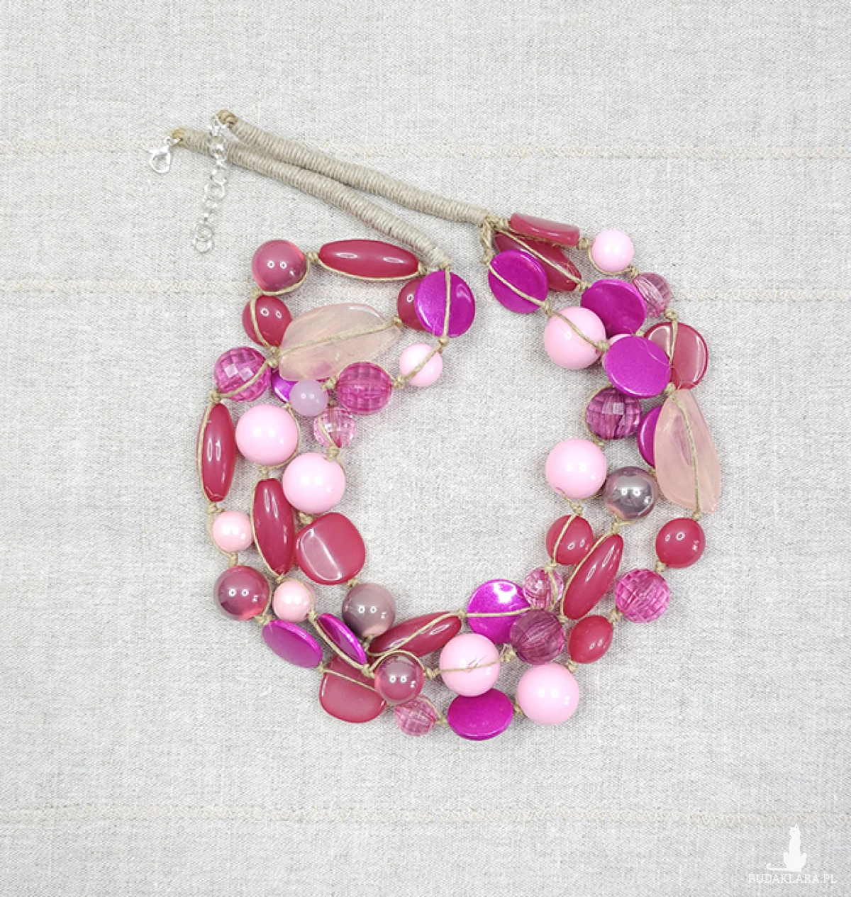 6443 lniany, różowy naszyjnik; korale