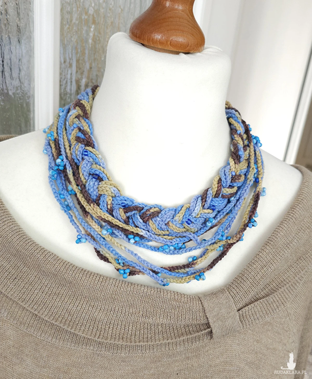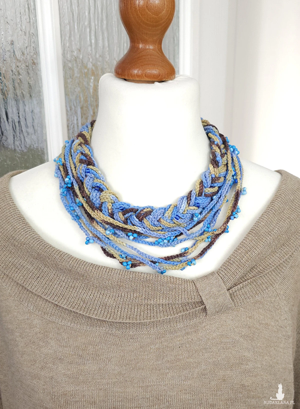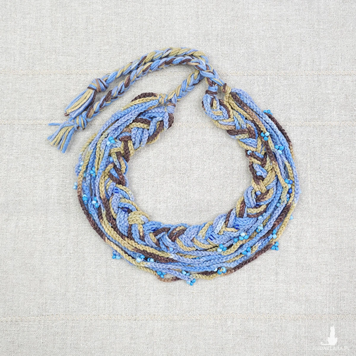 6521 niebieski, brązowy, włóczkowy naszyjnik