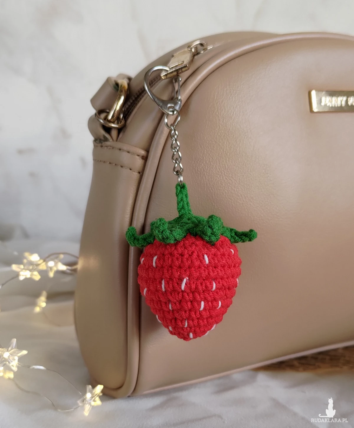 Szydełkowy letni breloczek truskaweczka będzie doskonałym dodatkiem do plecaka/torebki/kluczy oraz wspaniałym prezentem na każdą okazję i wyjątkowy moment.