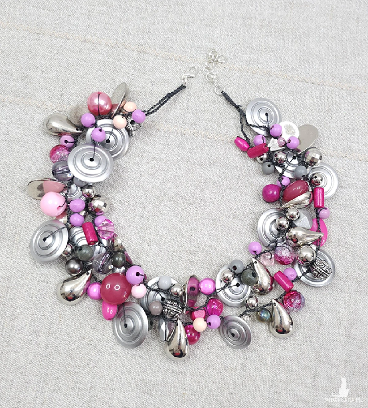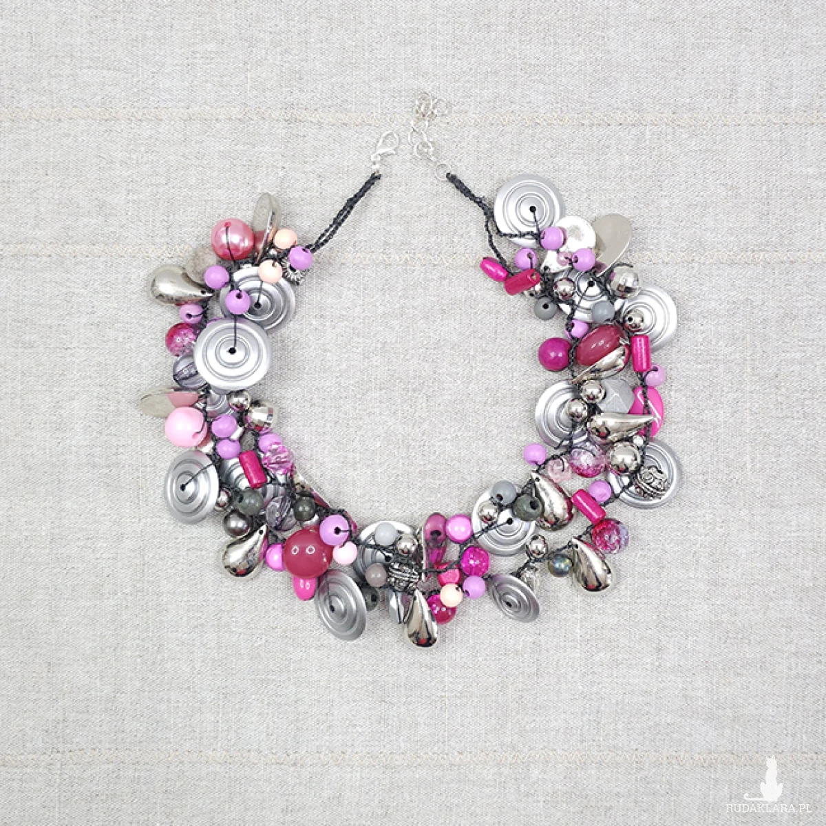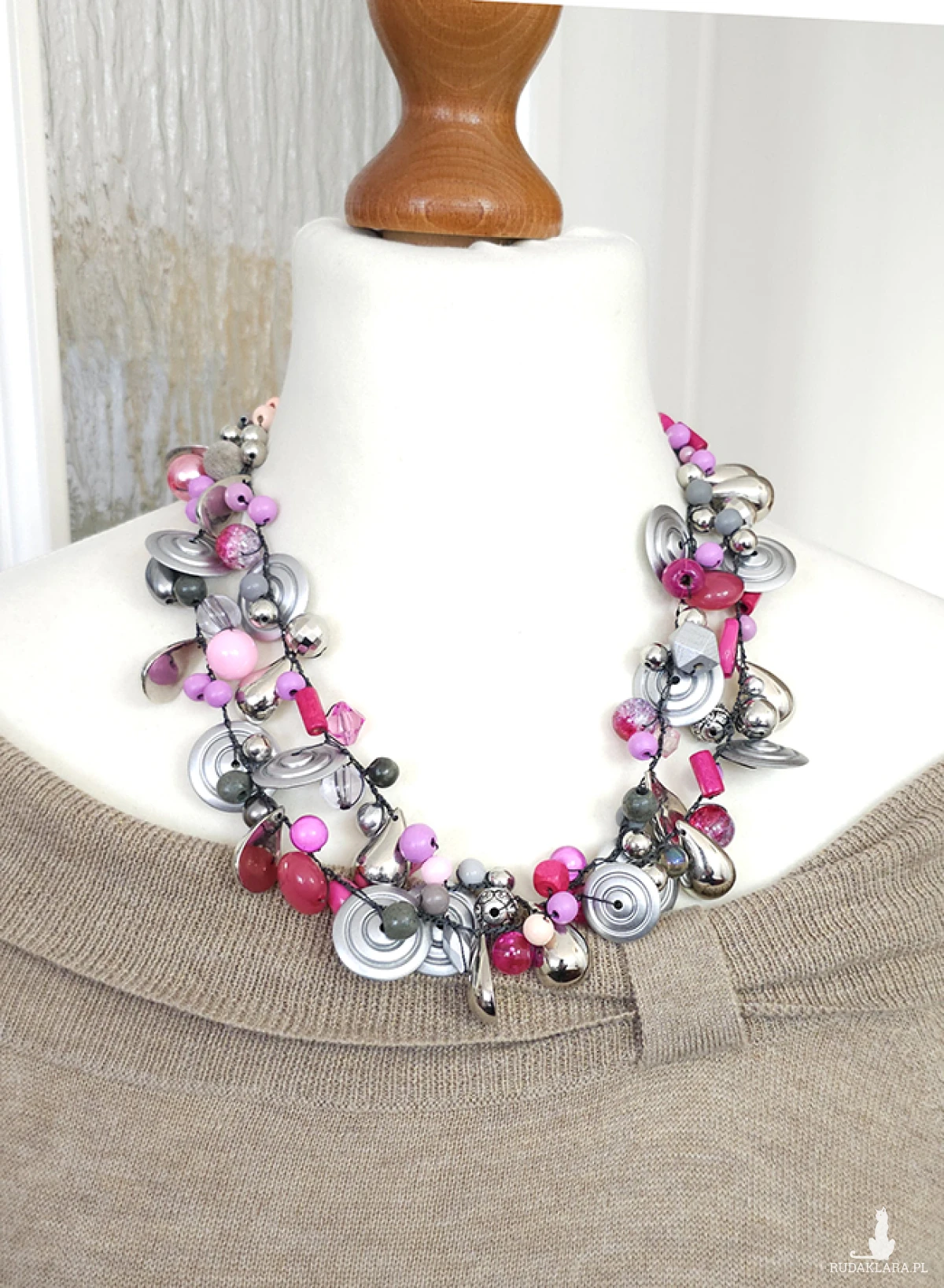 6379 szary, srebrny, różowy naszyjnik; kolia