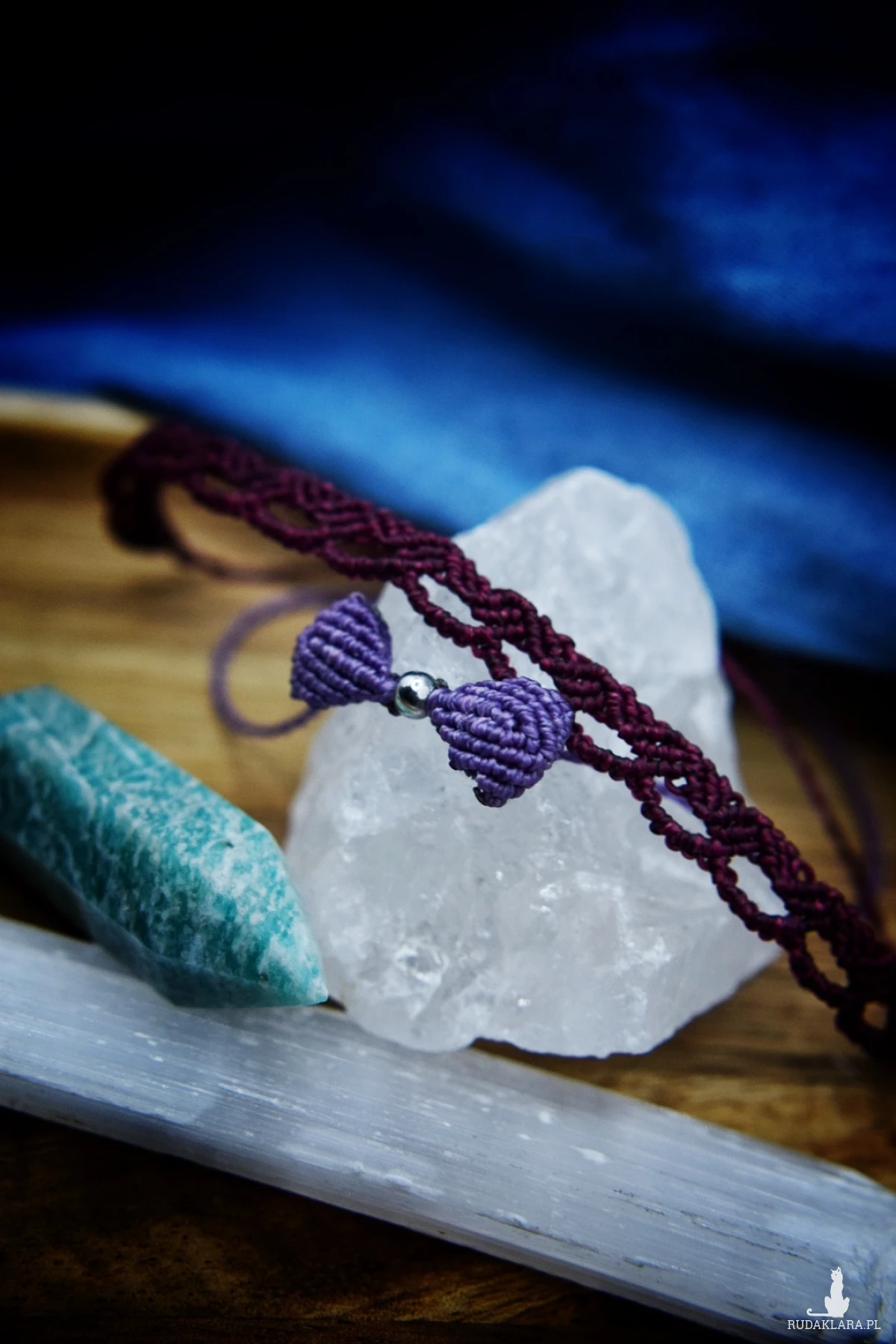 Zestaw bransoletek wykonany techniką mikro makramy.