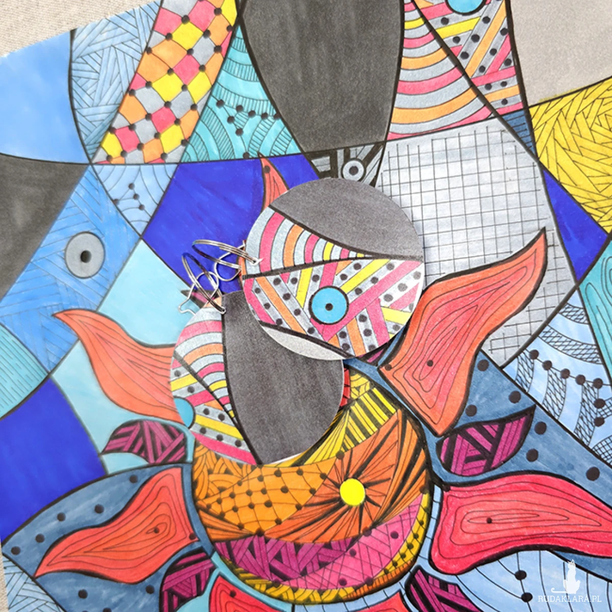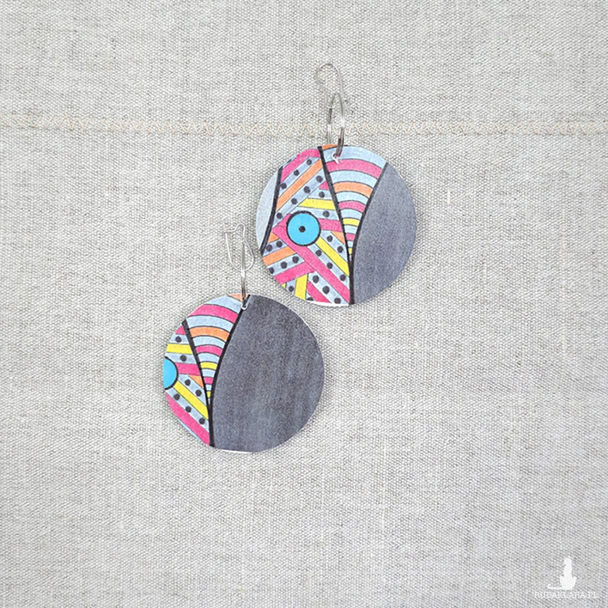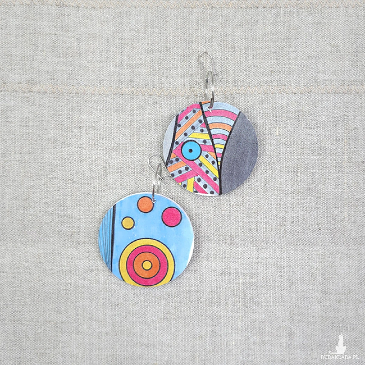 6510 kolorowe, niepowtarzalne, duże, dwustronne kolczyki; 4 w 1;