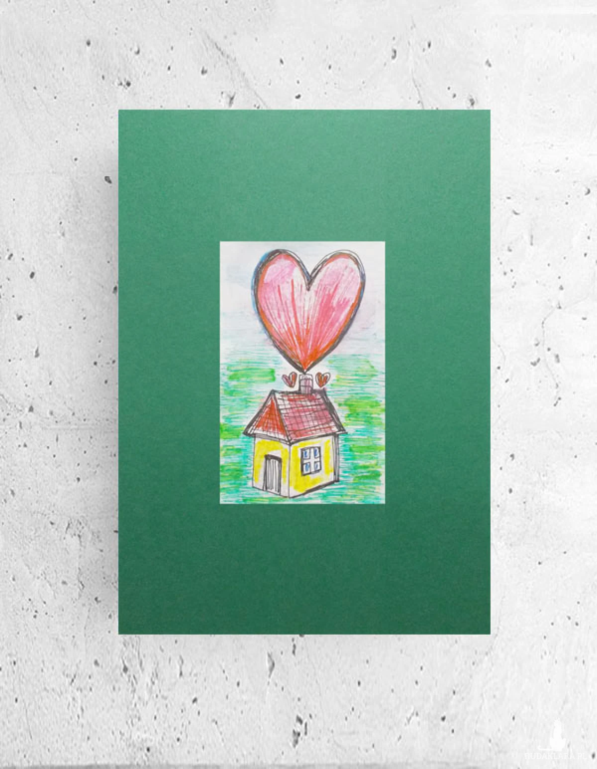 Nowy, kolorowy obrazek z domkiem. Ilustracja na ciemnozielonym kartoniku A4. Dekoracja na ścianę do sypialni, kuchni, jadalni, przedpokoju, pokoju dziecięcego lub młodzieżowego, garderoby, holu, kawiarni, restauracji itp. Plakat wystarczy dać do ramki 21x30 cm.. Poster będzie pasował do wnętrz urządzonych w stylu hygge, rustykalnym, boho, tradycyjnym, vintage, mieszanym.